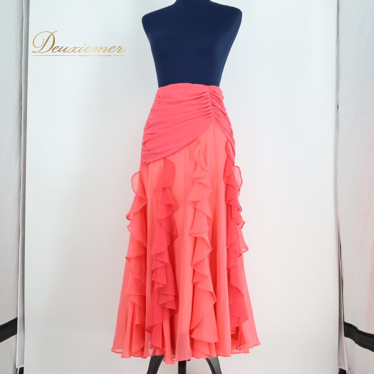 #社交ダンス #ダンス衣装 #スカート #サーモンピンク #レース #ラメ #伸縮性 #ウエストゴム #ダンスファッション #クリエイトサン #華やか #可愛い #デザイン #パフォーマンス #ダンススタイル #コスチューム #女性用 #ダンスウェア #特別な日 #ENUTSU