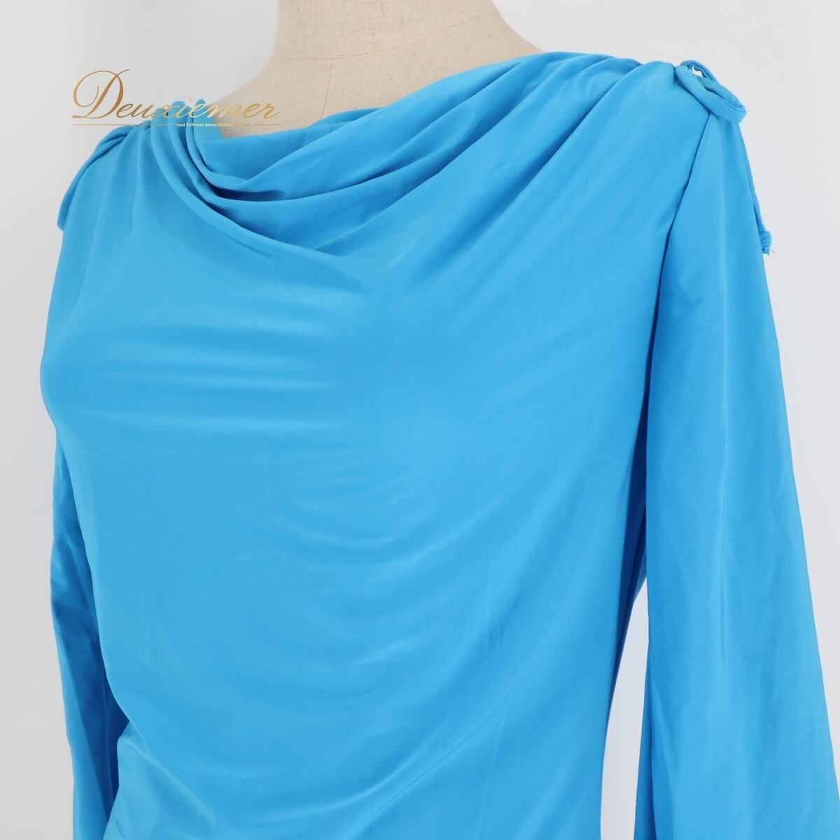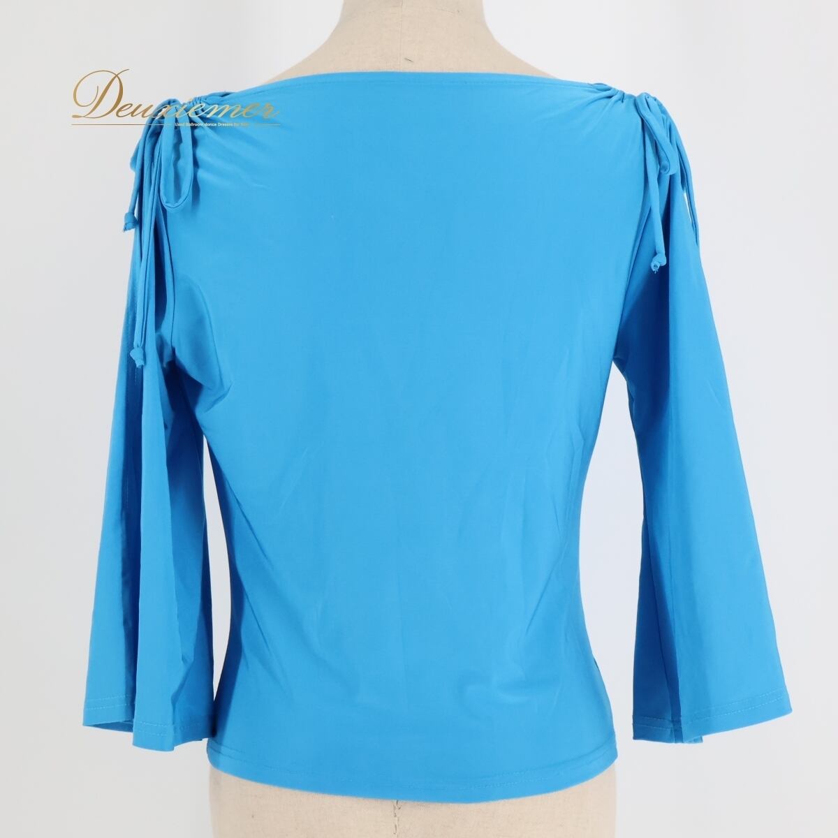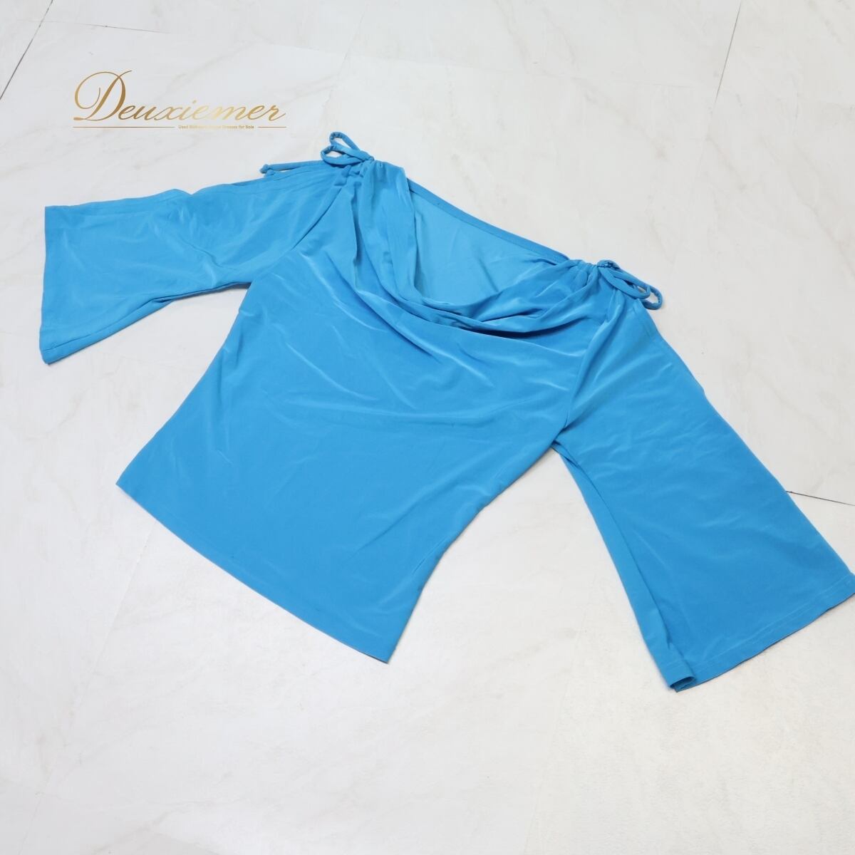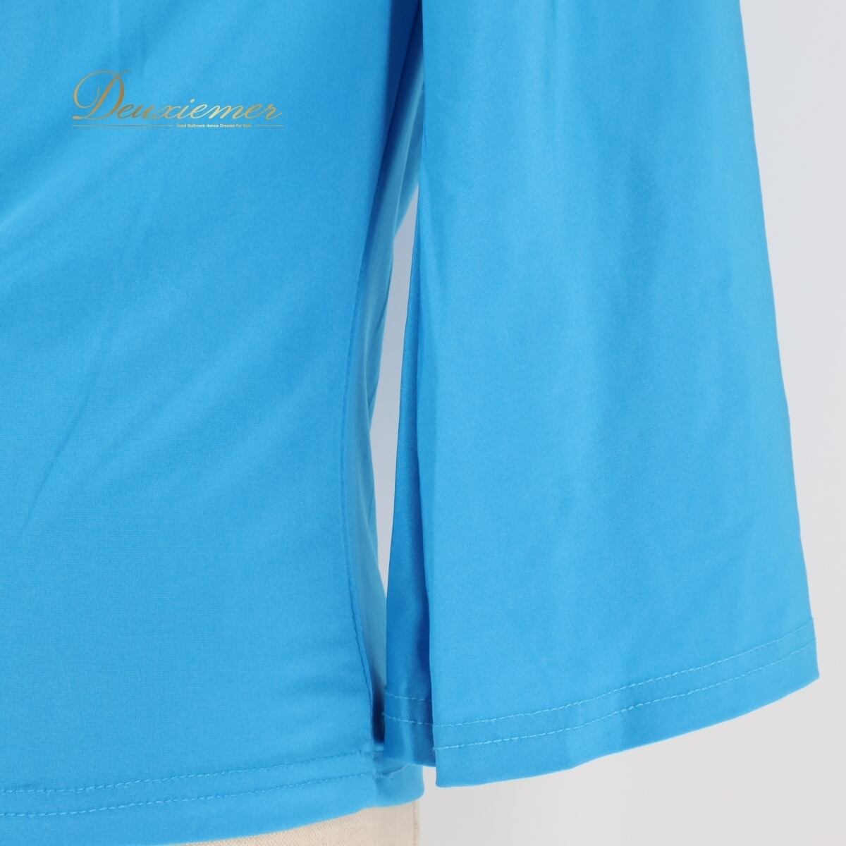 【社交ダンス衣装】ブルー create-sun クリエイトサン ブラウス トップス 水色 青 無地 リボン レッスン 伸縮 練習着 パーティ