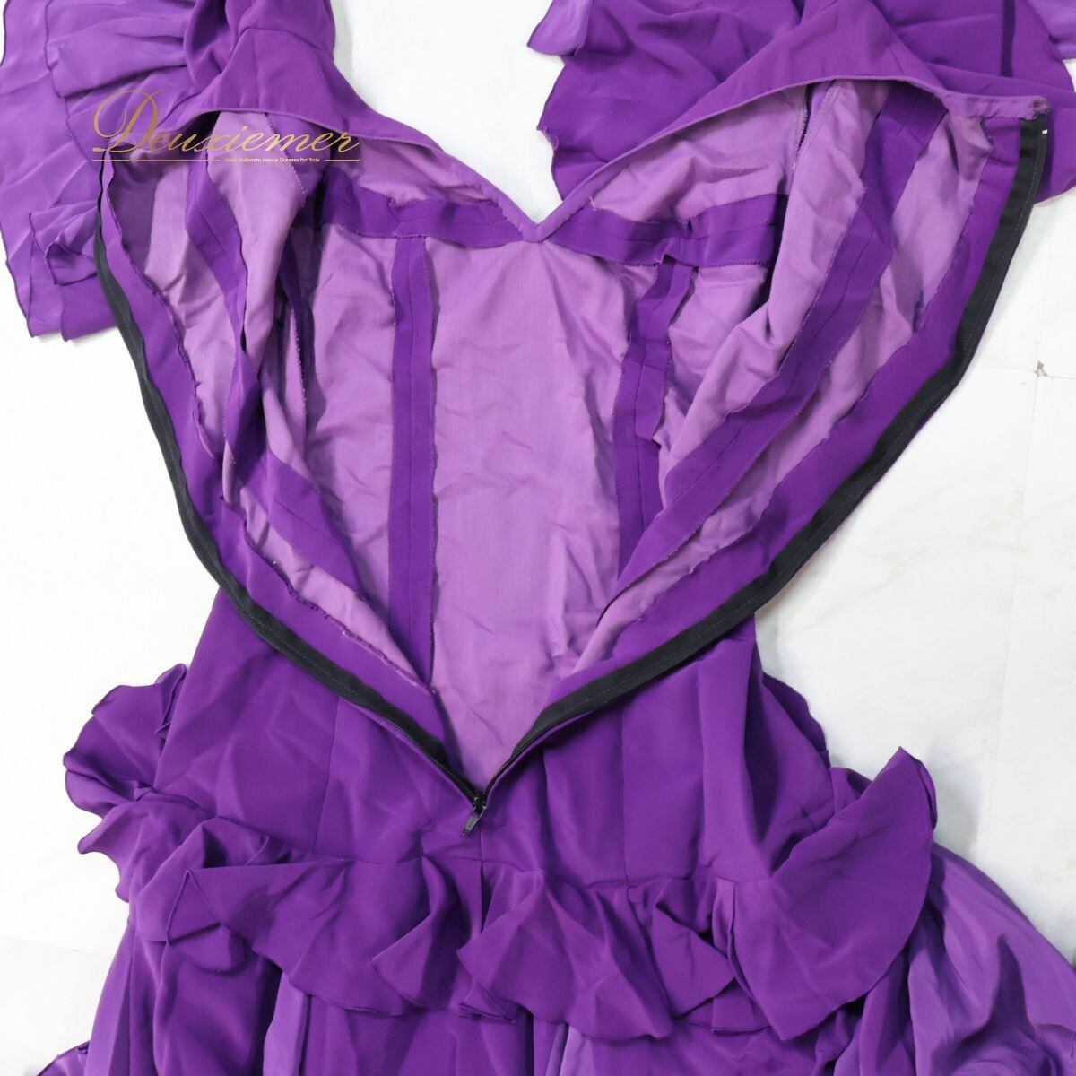 【フラメンコ衣装】パープル ワンピース ドレス 無地 紫 ボランテ フリル ピンク レース ダンス用 発表会 レディース 袖なし