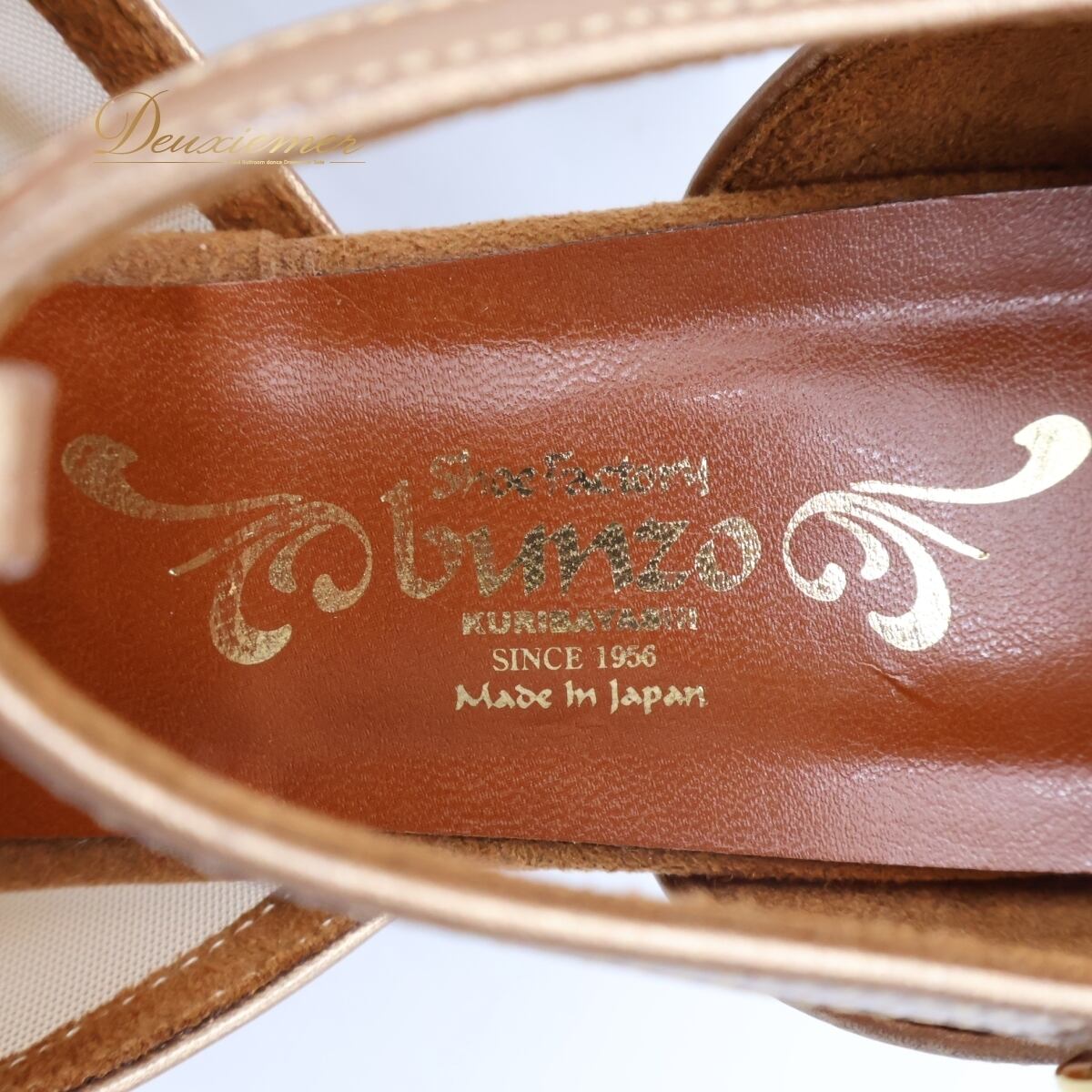 【日本製 社交ダンス用衣装】22CM相当 bunzo ブラウン ゴールド ダンス シューズ レディース用 茶色 靴 ヒール 光沢 メッシュ