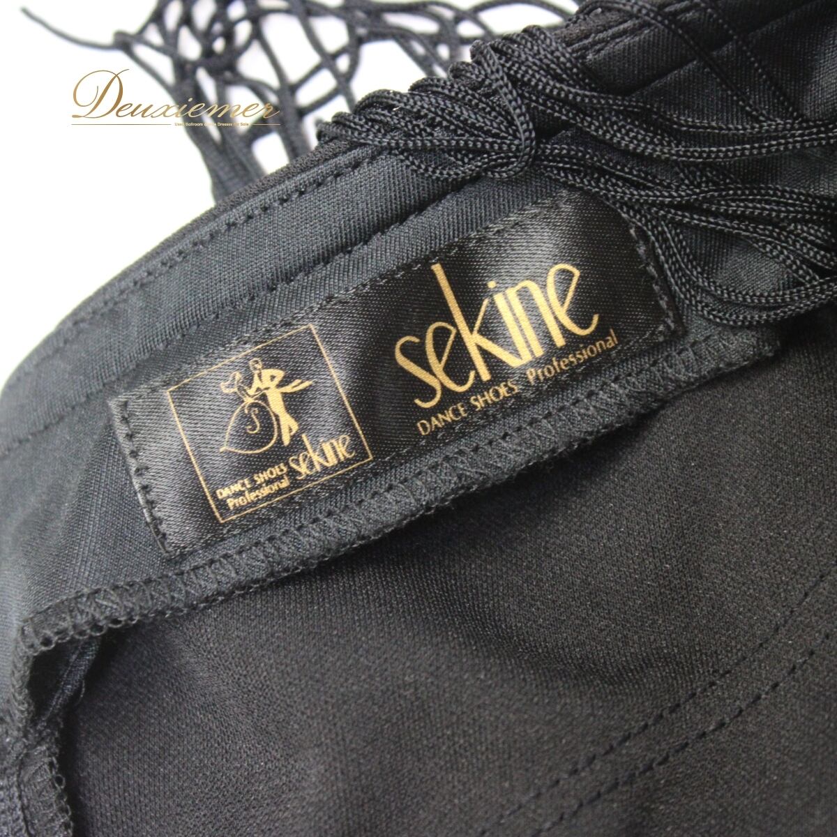 【美品 日本製社交ダンス衣装】ワンピース ドレス SEKINE セキネ Mサイズ 黒 白 ブラック ホワイト フリンジ かわいい 可愛い