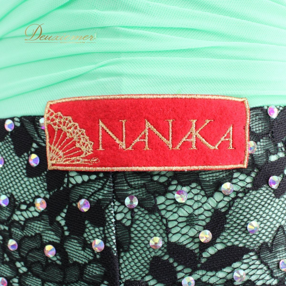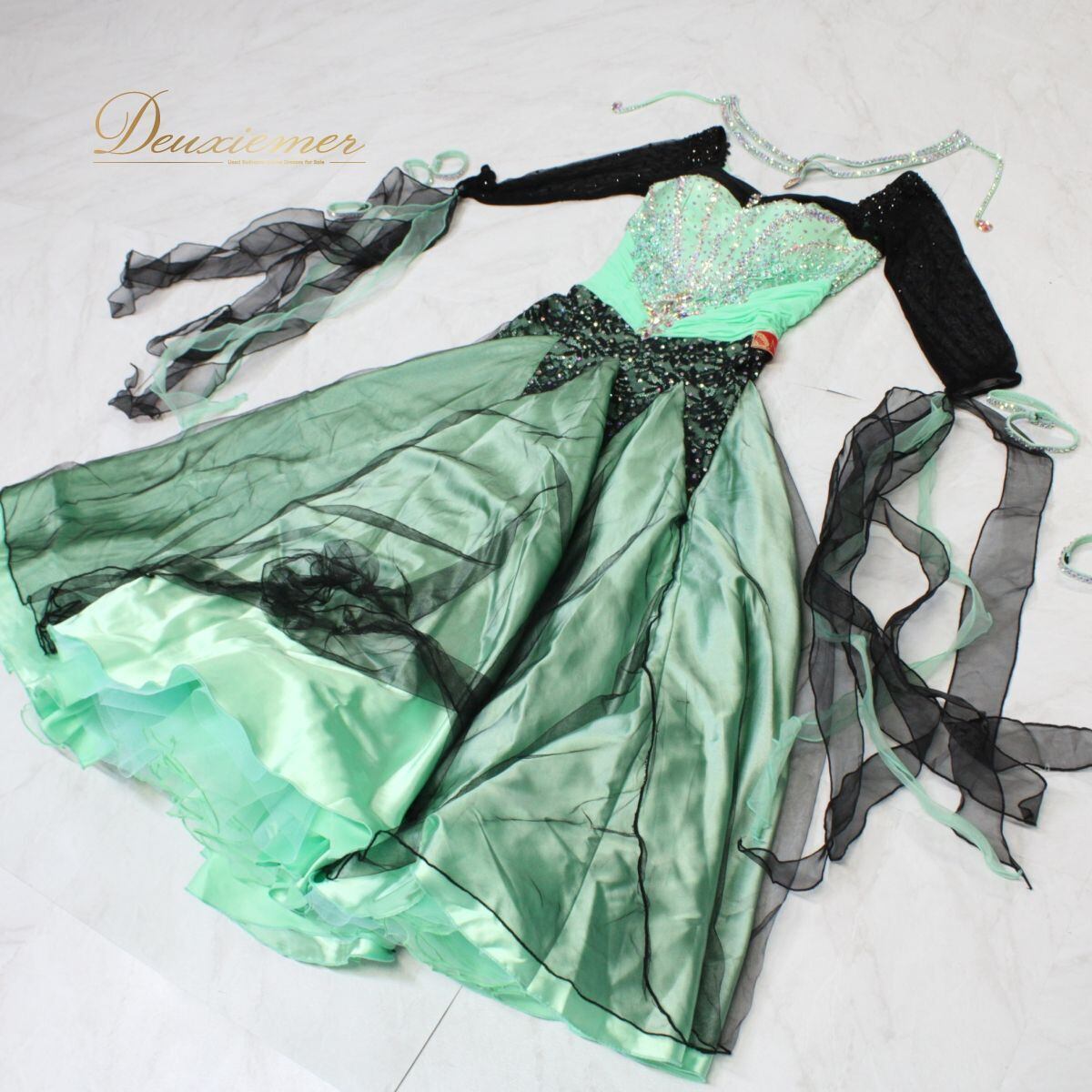 【美品 社交ダンス衣装】グリーン NANAKA ナナカ ワンピース ドレス 緑 ミント ブラック 黒 レース 高級感 上品 デモ 競技用