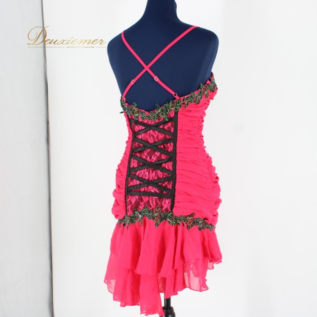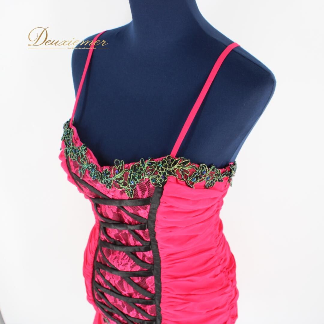 【美品 社交ダンス衣装】ワンピース ドレス ピンク 濃ピンク prima boutique プリマブティック 黒 ブラック レース 派手 上品