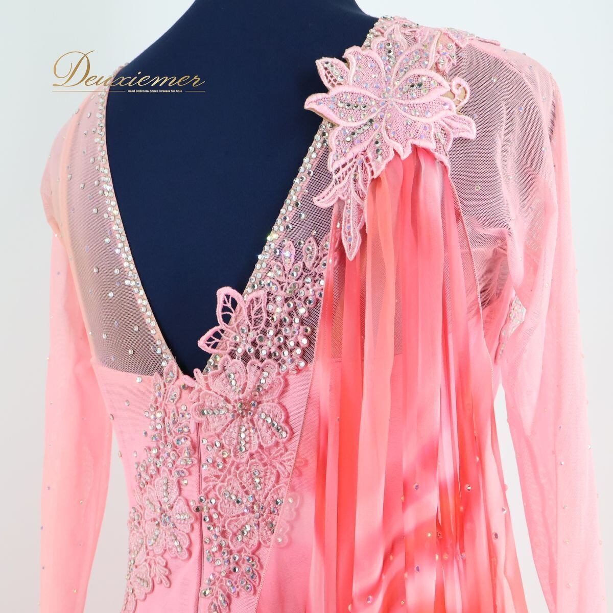 【日本製 社交ダンス衣装】ピンク SEKINE セキネ ワンピース ドレス レース フロート デモ 競技用 柄 女性らしい 綺麗 発表会
