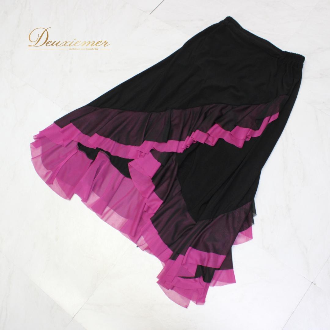 【社交ダンス衣装】上下セット トップス スカート prima boutique プリマブティック 黒 紫 ブラック パープル フリル リボン