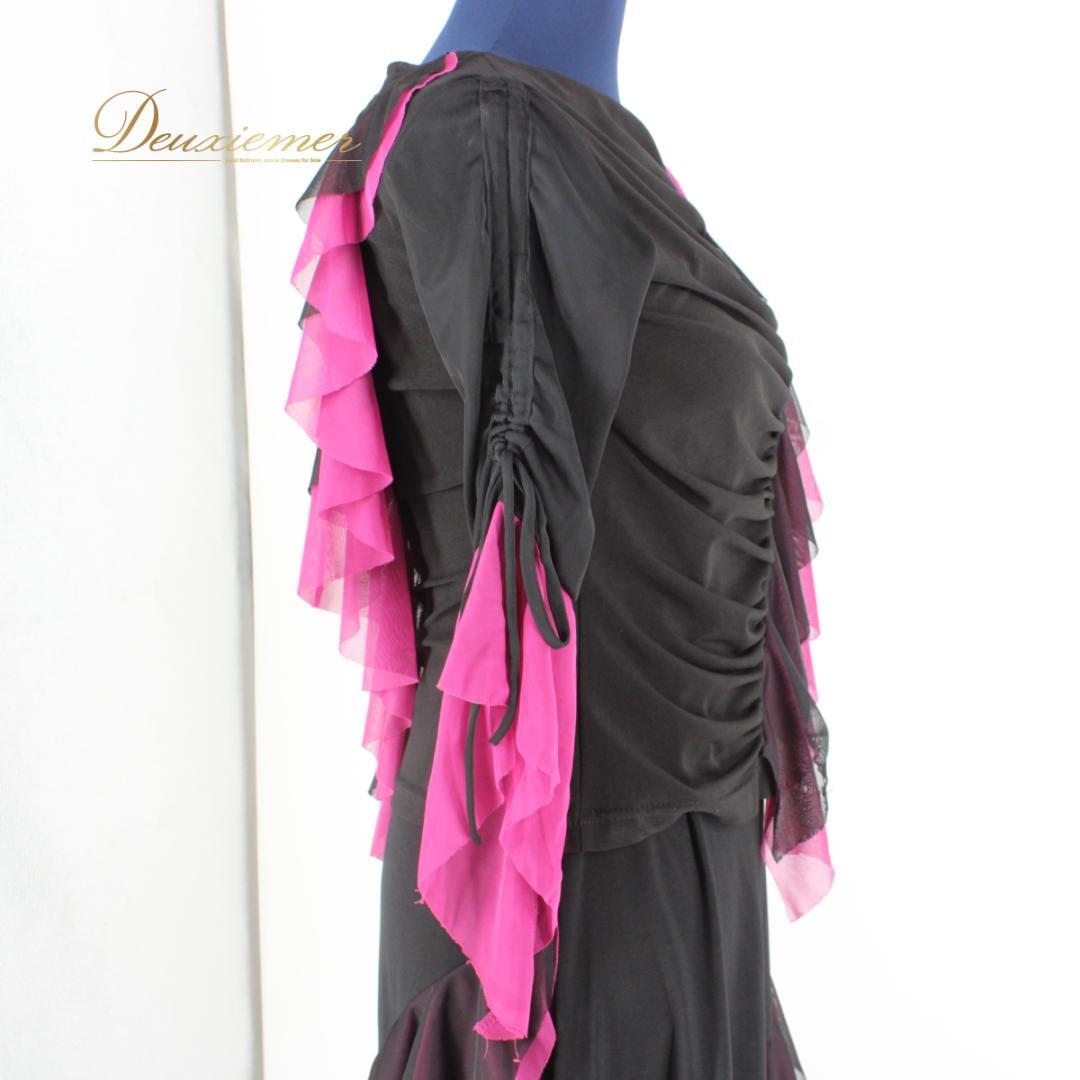 #社交ダンス衣装 #ダンススタイル #プリマブティック #ダンスウエア #ダンスファッション #ブラックパープル #ステージ衣装 #デザイン衣装 #ダンスパフォーマンス #ファスナー付き #伸縮性 #リボンアクセント #おしゃれ #上下セット #女性用衣装 #ダンス用衣装 #特別な日 #快適さ #パフォーマンス衣装 #ENUTSU