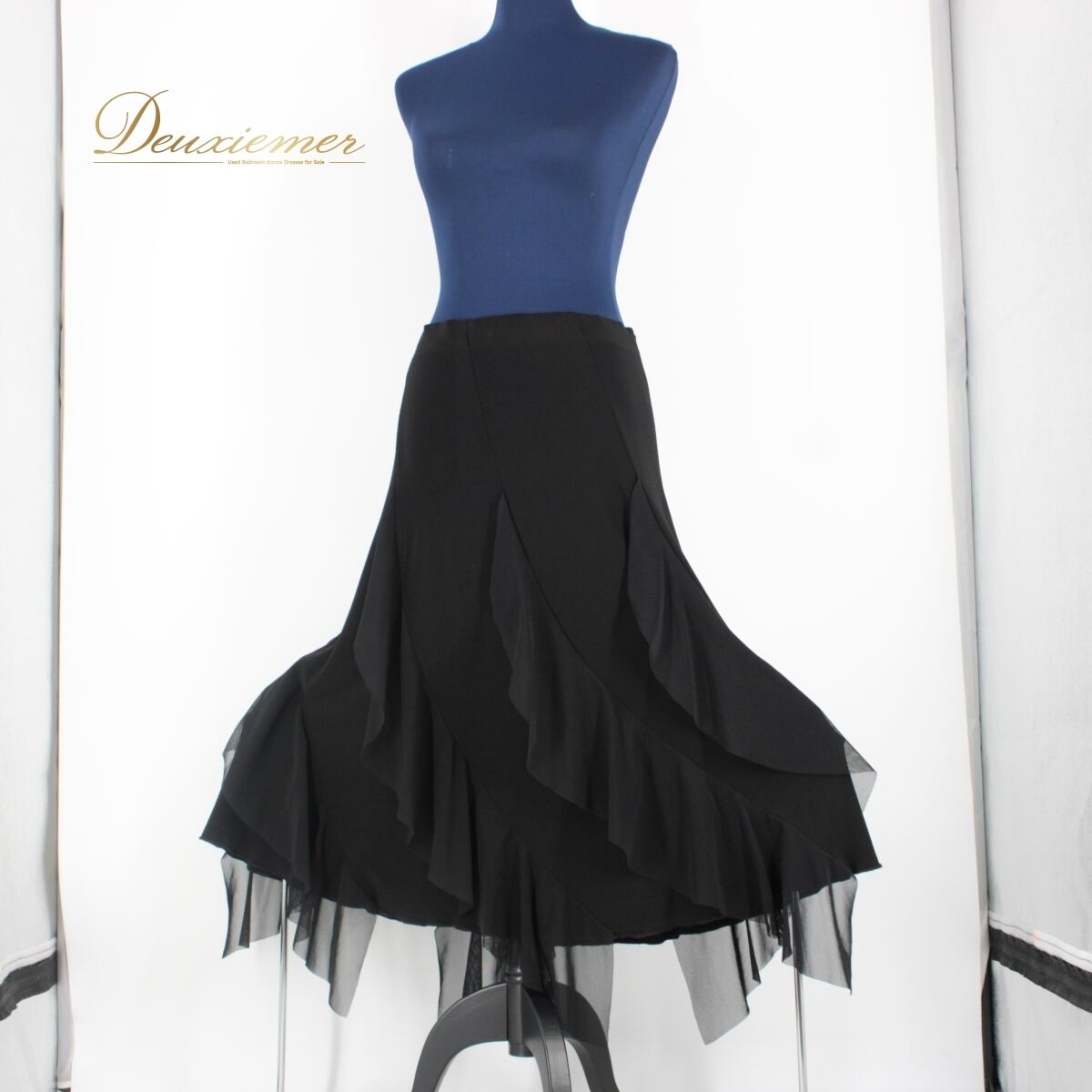 【美品 社交ダンス衣装】スカート レッスンウェア 練習着 黒 ブラック かわいい 可愛い 上品 シンプル 無地 シック 透け感