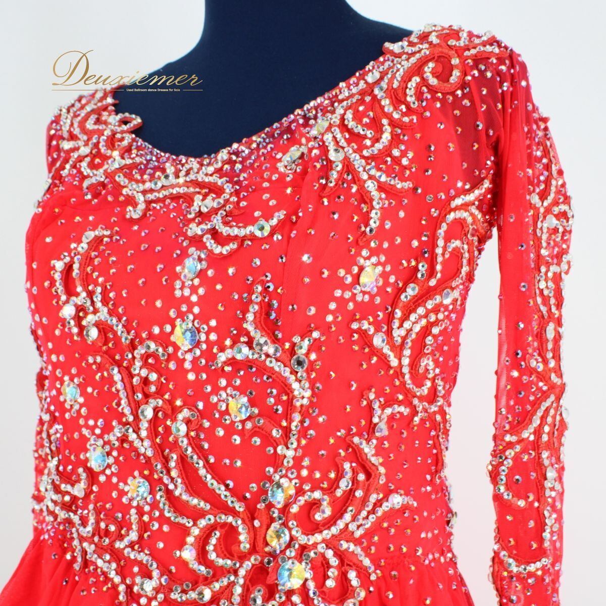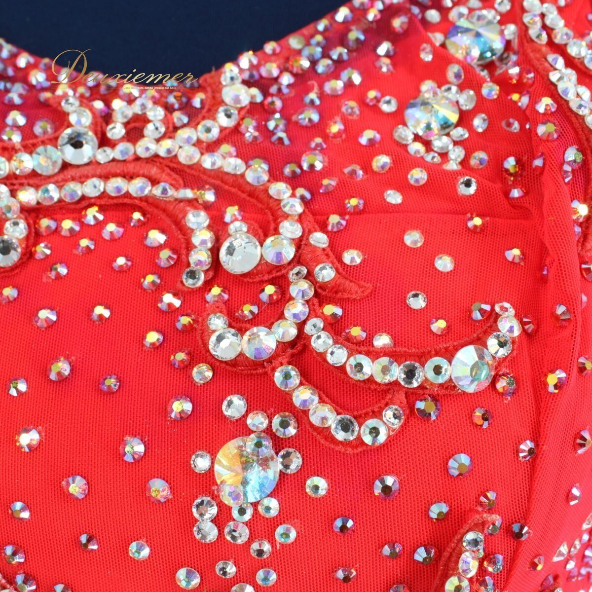 【美品 社交ダンス衣装】レッド ラテン ドレス ワンピース 赤 フリル レース デモ 競技用 ラインストーン 発表会 パーティ