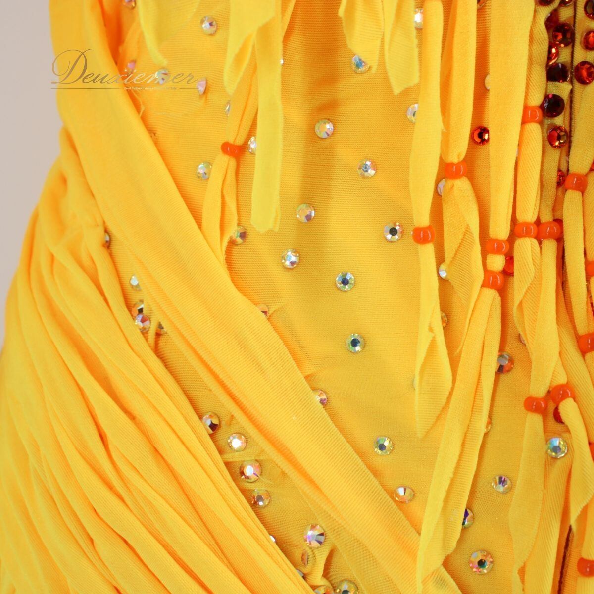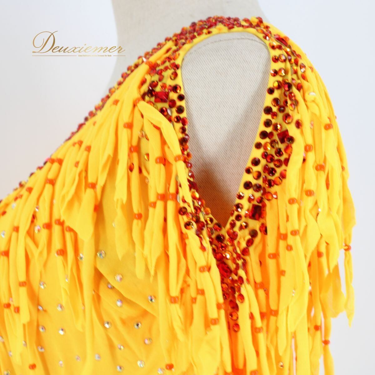 【美品 社交ダンス衣装】イエロー zdenka arko ズデンカ・アルコ ラテン ドレス ワンピース 黄色 オレンジ フリンジ デモ