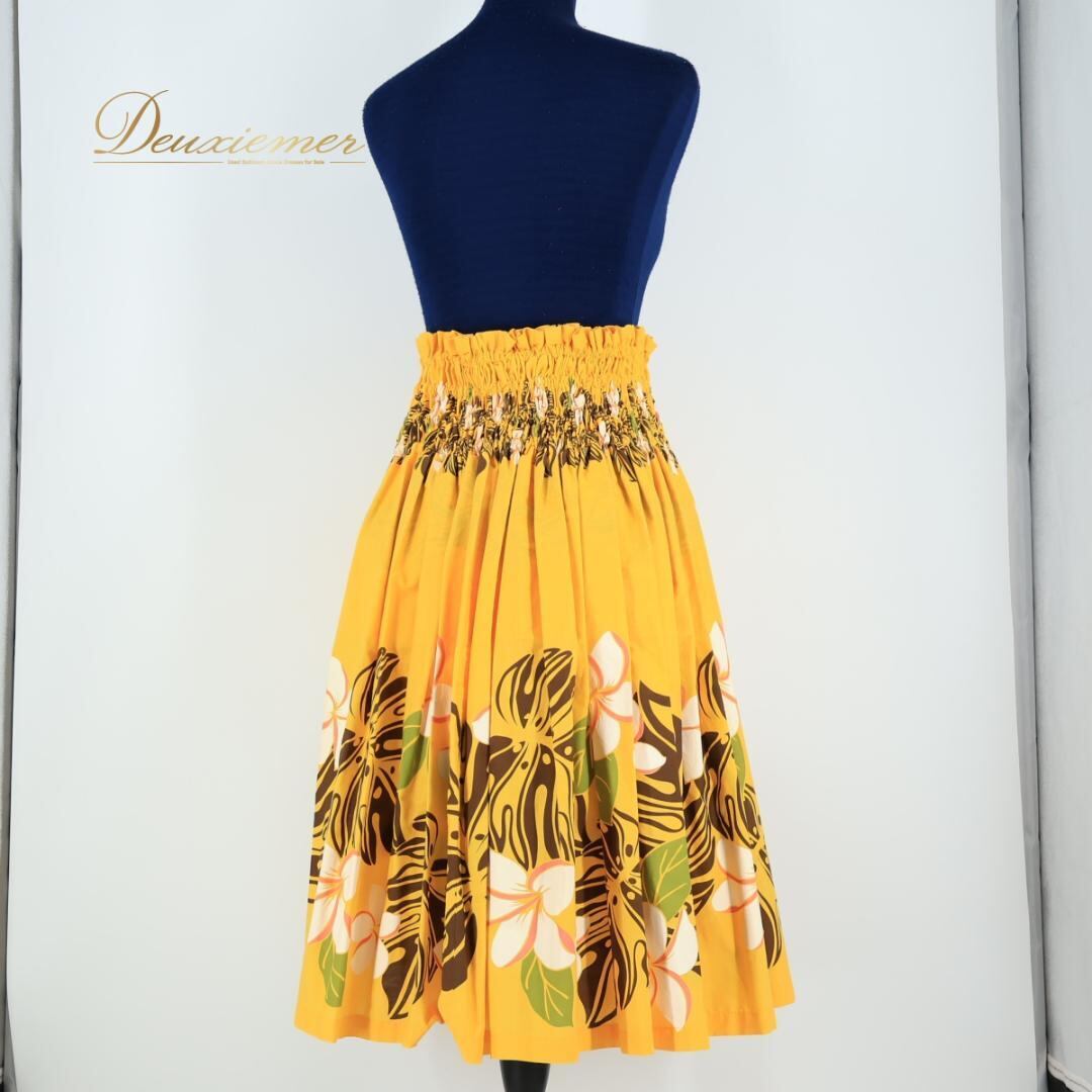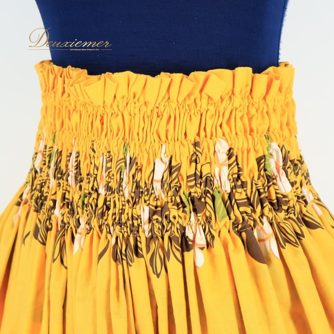 【日本製 フラダンス衣装】イエロー 都 パウスカート プルメリア柄 花柄 白 黄 茶 緑 ホワイト グリーン ブラウン かわいい
