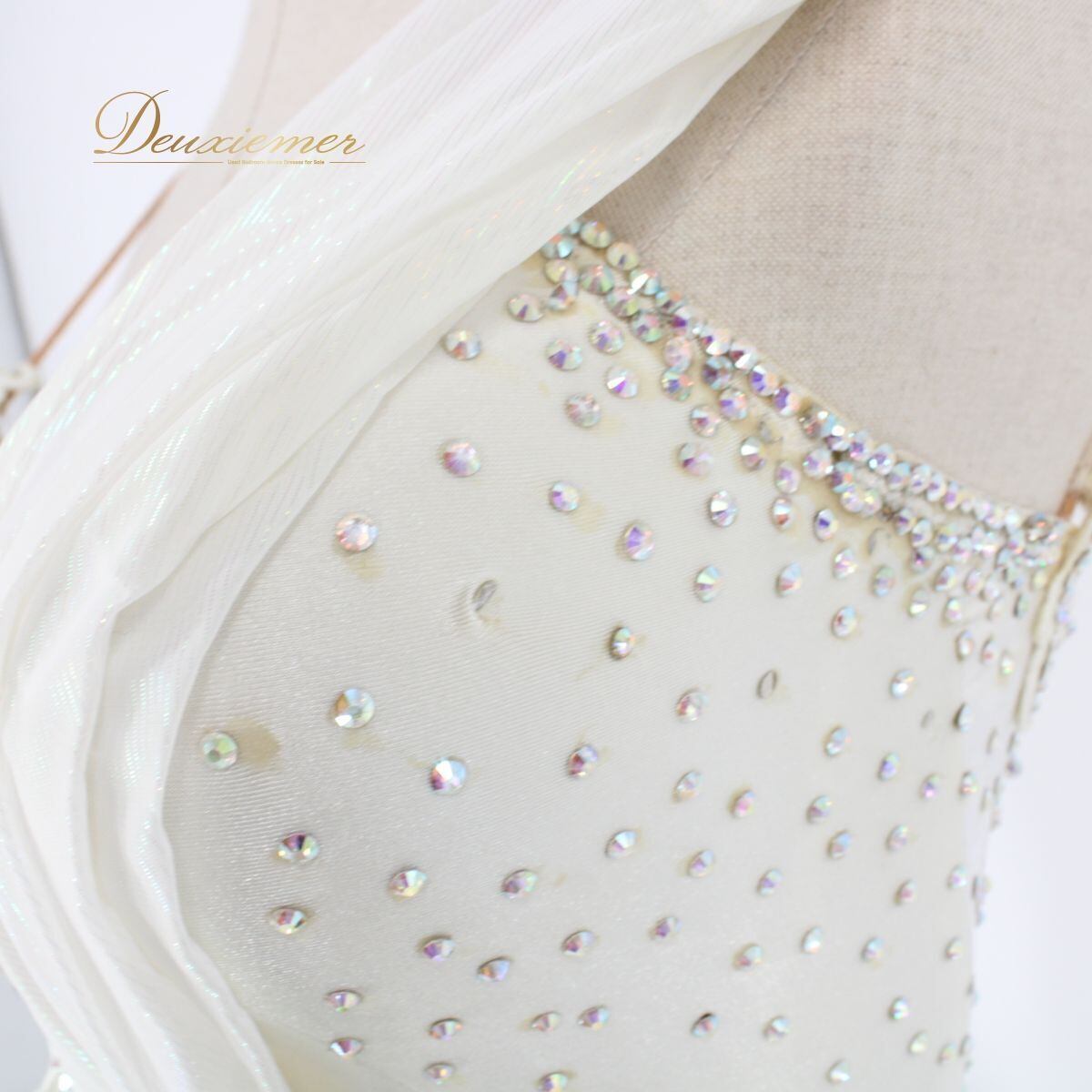 【社交ダンス衣装】ホワイト ワンピース ドレス 白 フリル レース シルバー デモ 競技用 ラインストーン 無地 綺麗 高級感