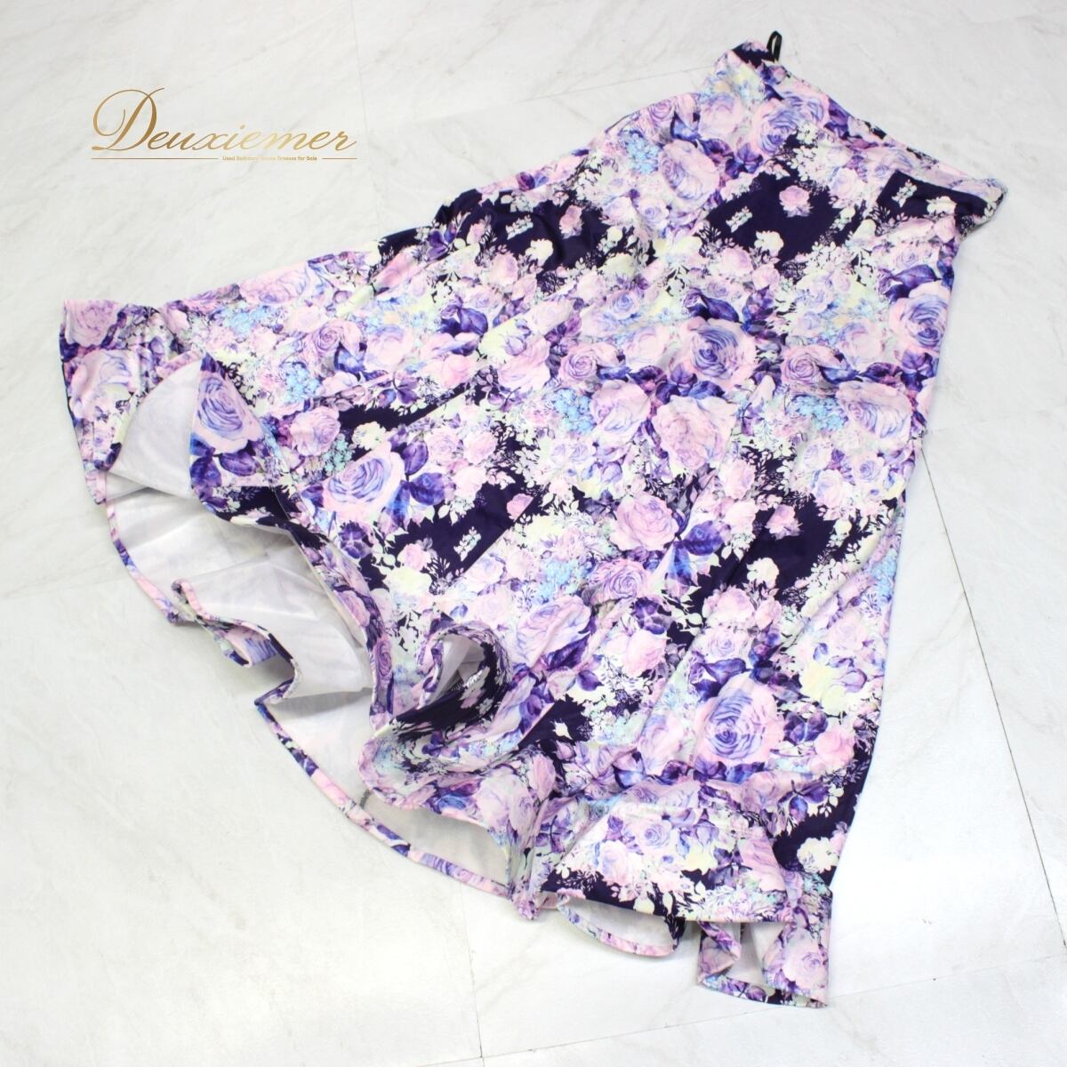 【美品 社交ダンス衣装】スカート レッスンウェア 練習着 紫 パープル ライラック 花柄 華やか 派手 目立つ かわいい 可愛い