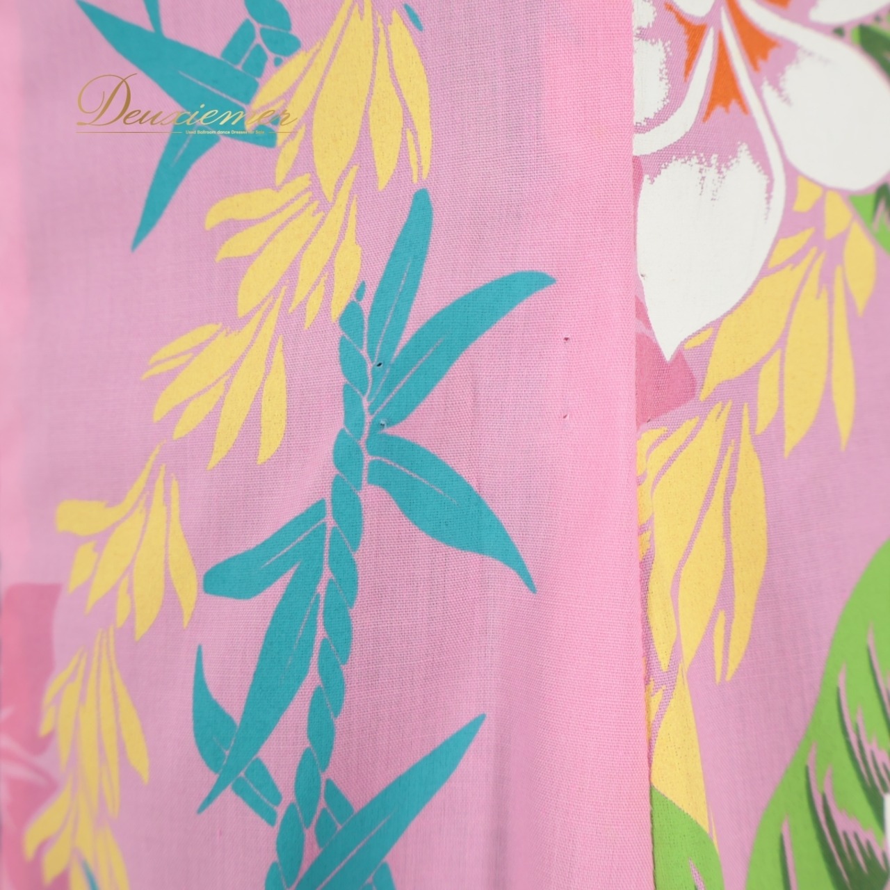 #フラダンス #ワンピースドレス #HulaHawaii #セキノレーシングスポーツ #日本製ドレス #ピンクドレス #明るいカラー #ノースリーブ #花柄ドレス #白アクセント #黄ポイント #緑デザイン #水色カラー #ダンス衣装 #ダンスコスチューム #ステージ衣装 #古着 #中古 #ENUTSU