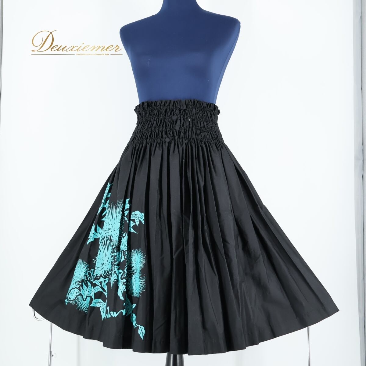 #フラダンス #パウスカート #MAHALO #マハロ #日本製スカート #ブラックスカート #黒スカート #レフア柄 #グリーンアクセント #落ち着いた色合い #華やかデザイン #ハワイアンスタイル #南国ファッション #かわいいスカート #フラ衣装 #リゾートスタイル #ハワイアンスカート #ダンス衣装 #ダンスコスチューム #ステージ衣装 #古着 #中古 #ENUTSU