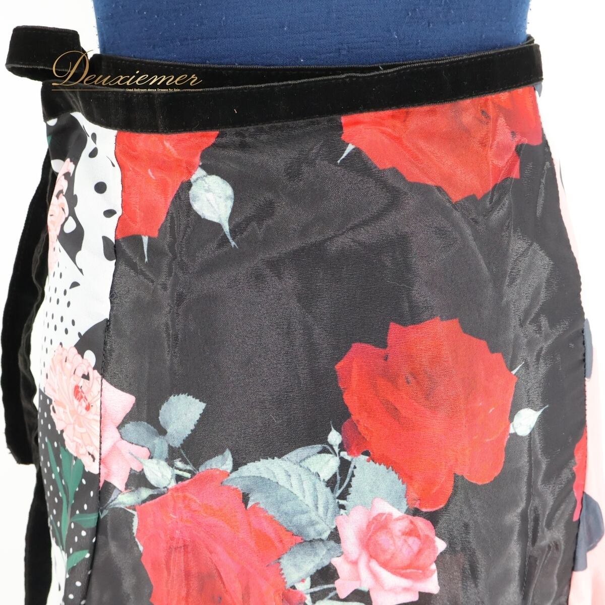 【美品 フラメンコ衣装】ブラック leirena レイリーナ 巻きスカート ファルダ 軽い 柄 花柄 ドット 薄い 黒 白 赤 レッド 模様