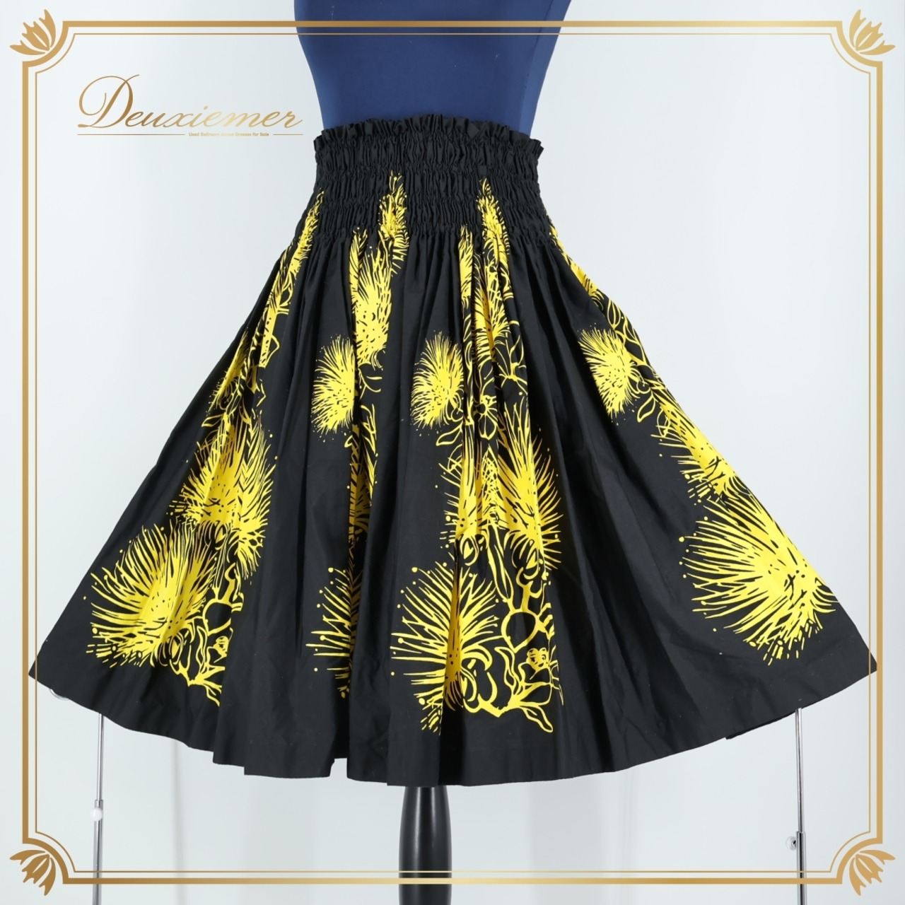 #フラダンス #パウスカート #MAHALO #マハロ #日本製スカート #ブラックスカート #イエローアクセント #レフア柄 #花柄スカート #華やかデザイン #鮮やかカラー #ハワイアンスタイル #南国ファッション #かわいいスカート #フラ衣装 #リゾートスタイル #ハワイアンスカート #黒スカート #黄ポイント #ダンス衣装 #ダンスコスチューム #ステージ衣装 #古着 #中古 #ENUTSU