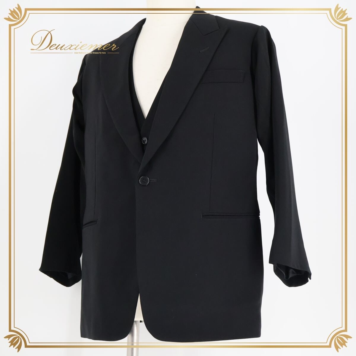 【美品 日本製 社交ダンス衣装】ブラック Chacott チャコット メンズ ジャケット ベスト 黒 ダンス用 無地 スーツ 男性 ジャケット ベスト セット ステージ 舞台 ダンス 発表会