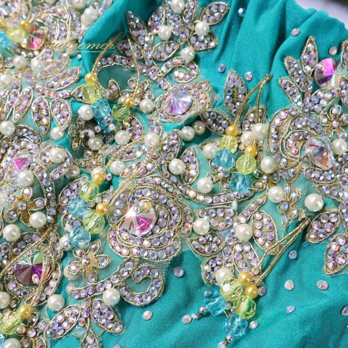 #ベリーダンス #オリエンタル衣装 #エメラルドグリーン #ラインストーン #パールビーズ #トップス #スカート #ダンス衣装 #ダンスパフォーマンス #ファッション #パーティー #コスチューム #華やか #ステージ衣装 #女子会 #エスニック #文化 #ダンスレッスン #イベント #ENUTSU