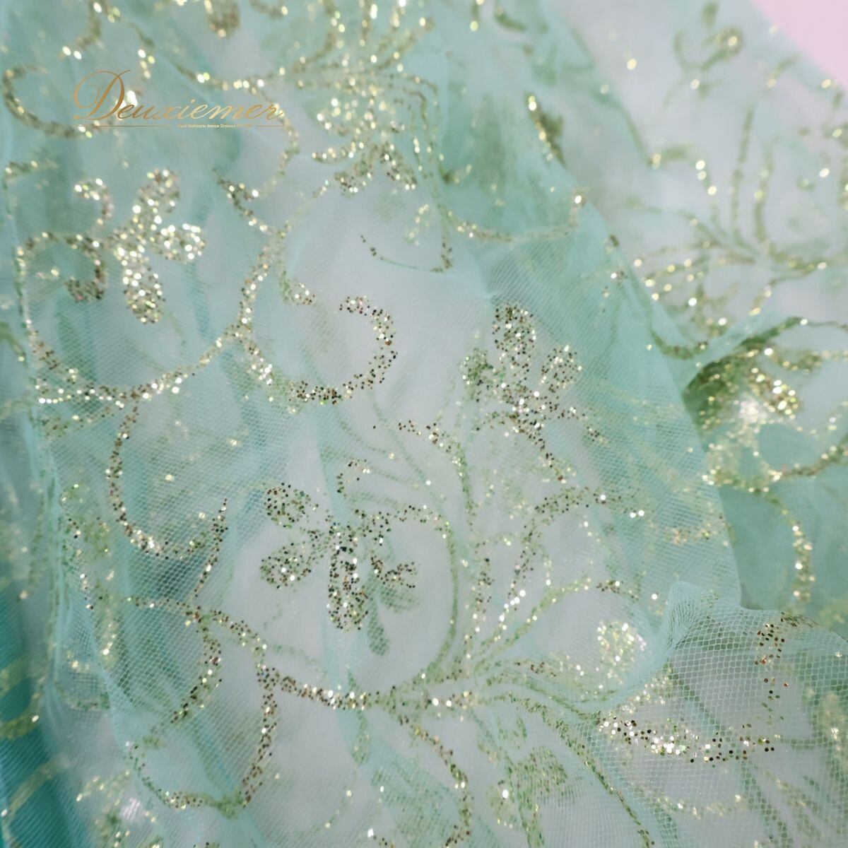 【ベリーダンス用 オリエンタル衣装】エメラルドグリーン ラインストーン ビーズ 豪華 パール フリル 緑 シルバー 花柄 綺麗