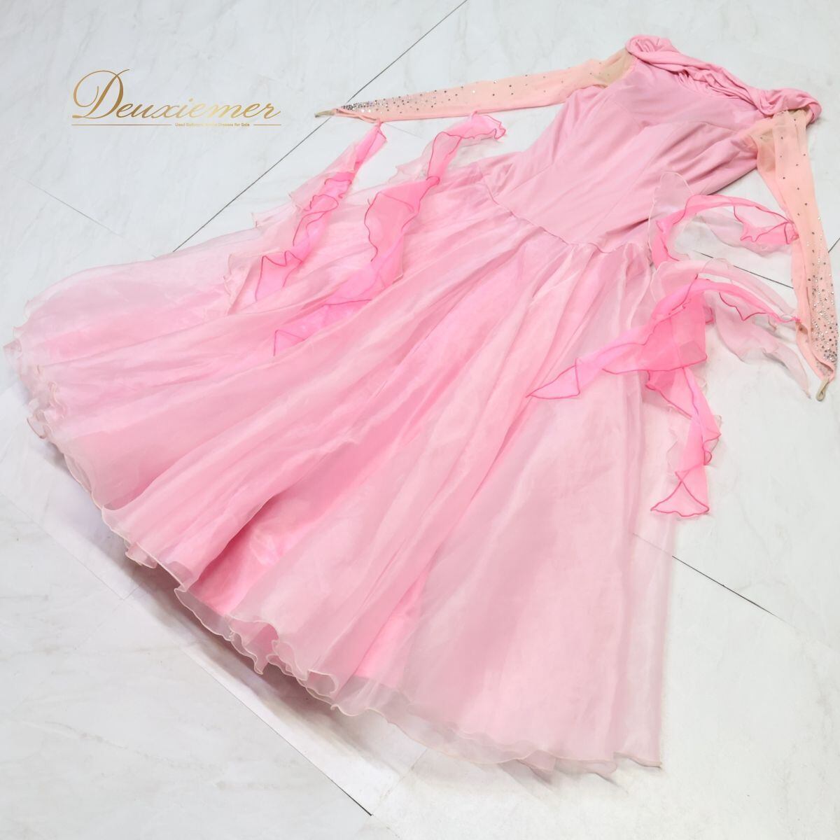 #社交ダンス #ダンス衣装 #ドレス #ワンピース #レオタード #ピンク色 #女性らしい #控えめデザイン #スカート重ね #ファッション #ダンスファッション #かわいい #おしゃれ #特別な日 #イベント #舞台衣装 #体型カバー #夏ファッション #伸縮性 #ENUTSU
