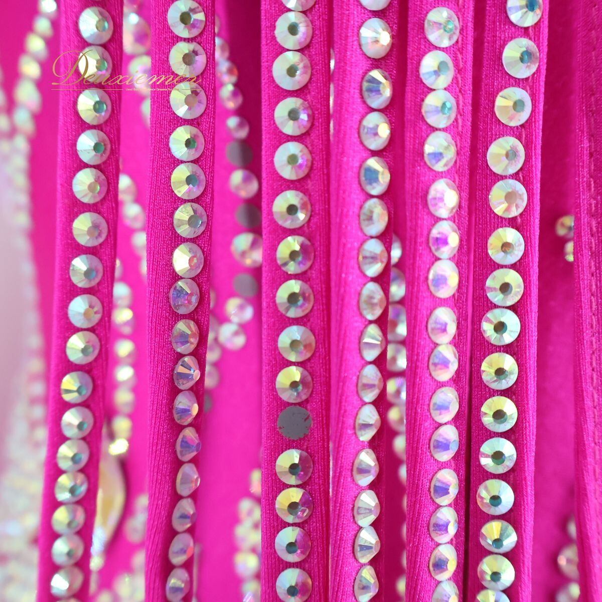 【社交ダンス衣装】ピンク ワンピース ドレス フリル レース ダンス用 フロート ラインストーン デモ 競技用 レディース