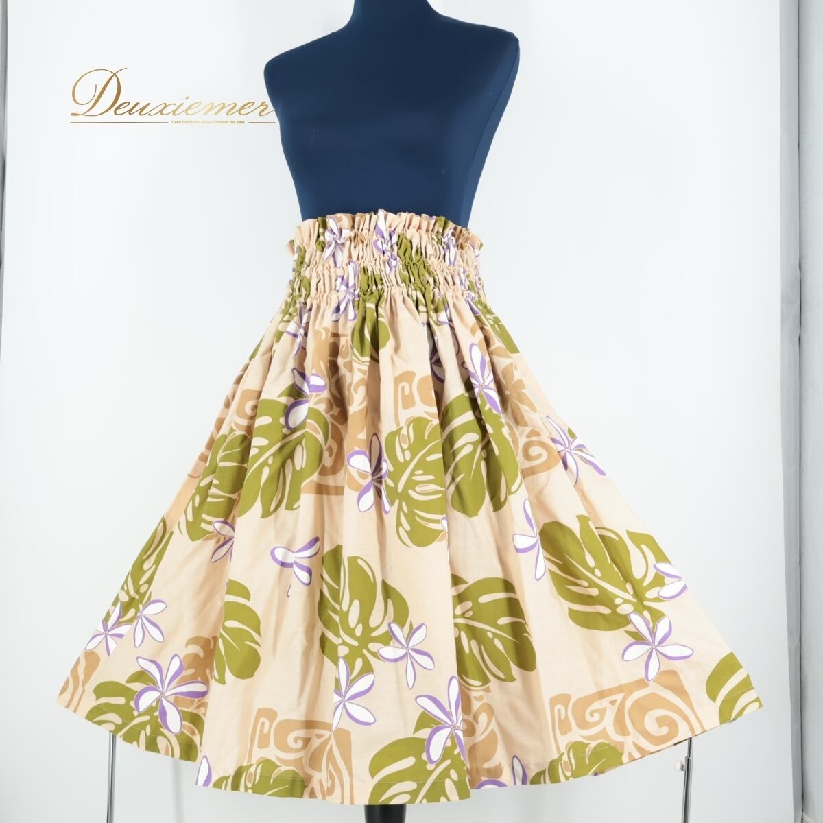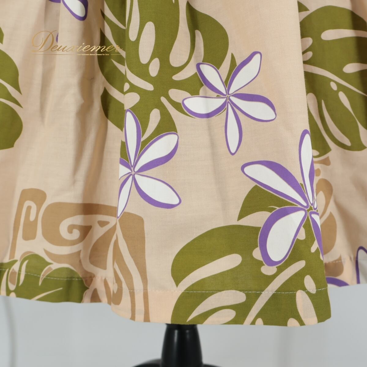 【日本製 フラダンス衣装】ベージュ パウスカートショップ パウスカート 白 紫 緑 花柄 パープル グリーン ハワイアン 可愛い