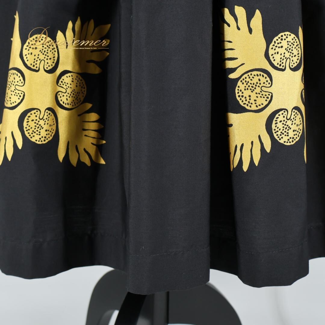 【フラダンス衣装】ブラック HULA GIRLS パウスカート 黒 金 ゴールド 煌びやか シンプル シングル ハワイアン アロハ 可愛い