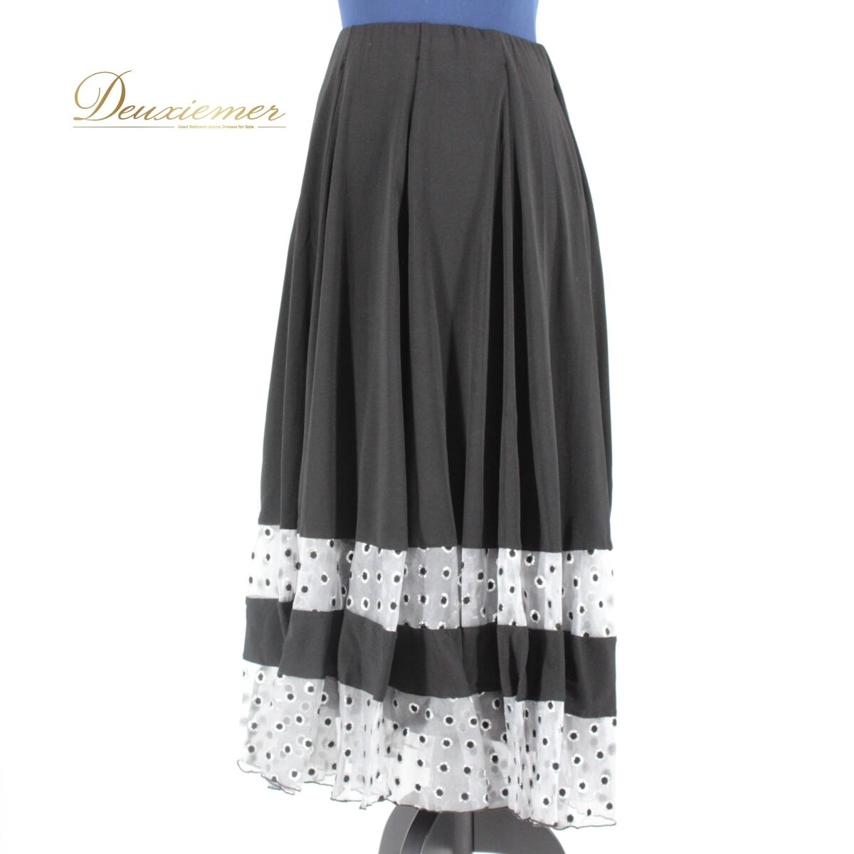 【美品 社交ダンス衣装】スカート レッスンウェア 練習着 黒 白 ブラック ホワイト ドット 水玉 バイカラー かわいい 可愛い