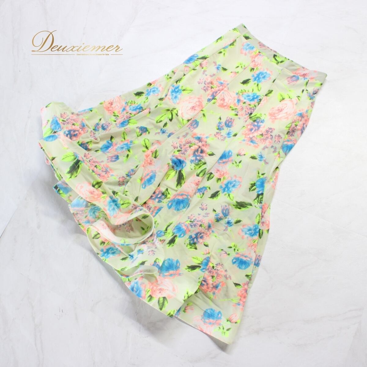 【美品 社交ダンス衣装】スカート レッスンウェア 練習着 ICHIOKU イチオク 黄緑 青 ライトグリーン ブルー 蛍光ピンク 花柄