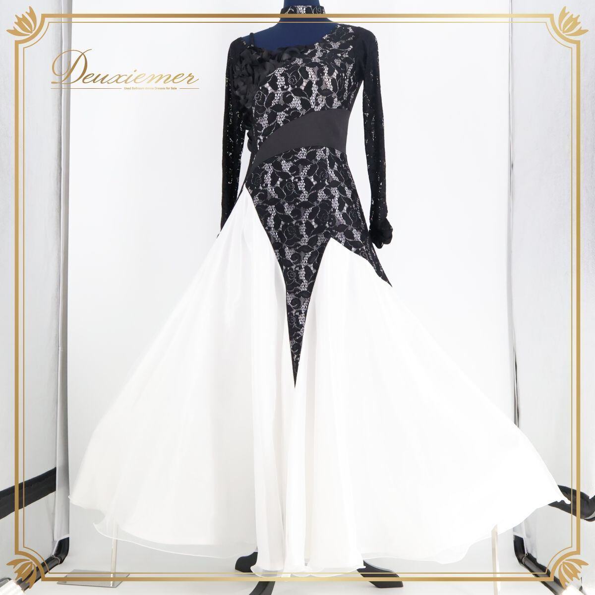 【美品 日本製 社交ダンス衣装】ブラック DayDream へインレイツ ワンピース ドレス 白 黒 ホワイト レース 軽い パーティ