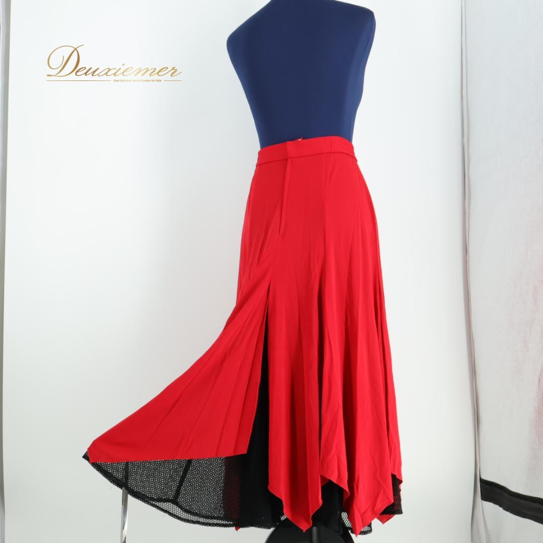 【日本製 社交ダンス衣装】レッド Chacott チャコット スカート 赤 黒ブラック スリット 無地 レース レッスン パーティ