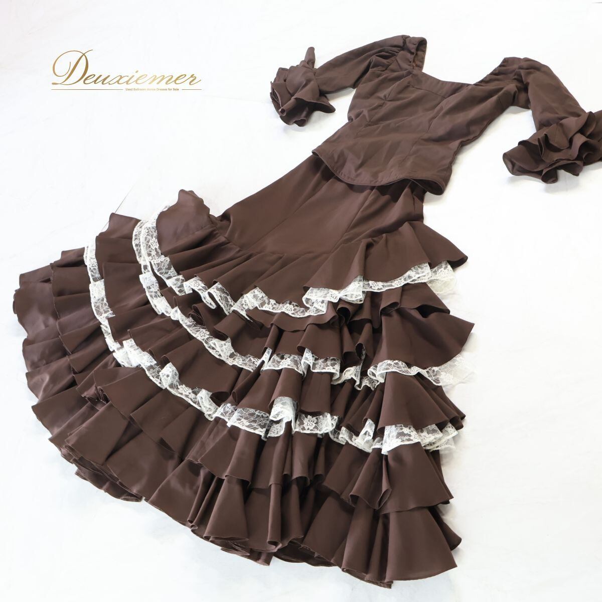 #フラメンコ #衣装 #セットアップ #ツーピース #舞台衣装 #ダンス衣装 #段々ボランテ #エレガント #焦げ茶色 #ファッション #パフォーマンス #特別な日に #オシャレ #女性らしさ #ダンス #ステージ #こだわり #魅力 #コーディネート #ENUTSU