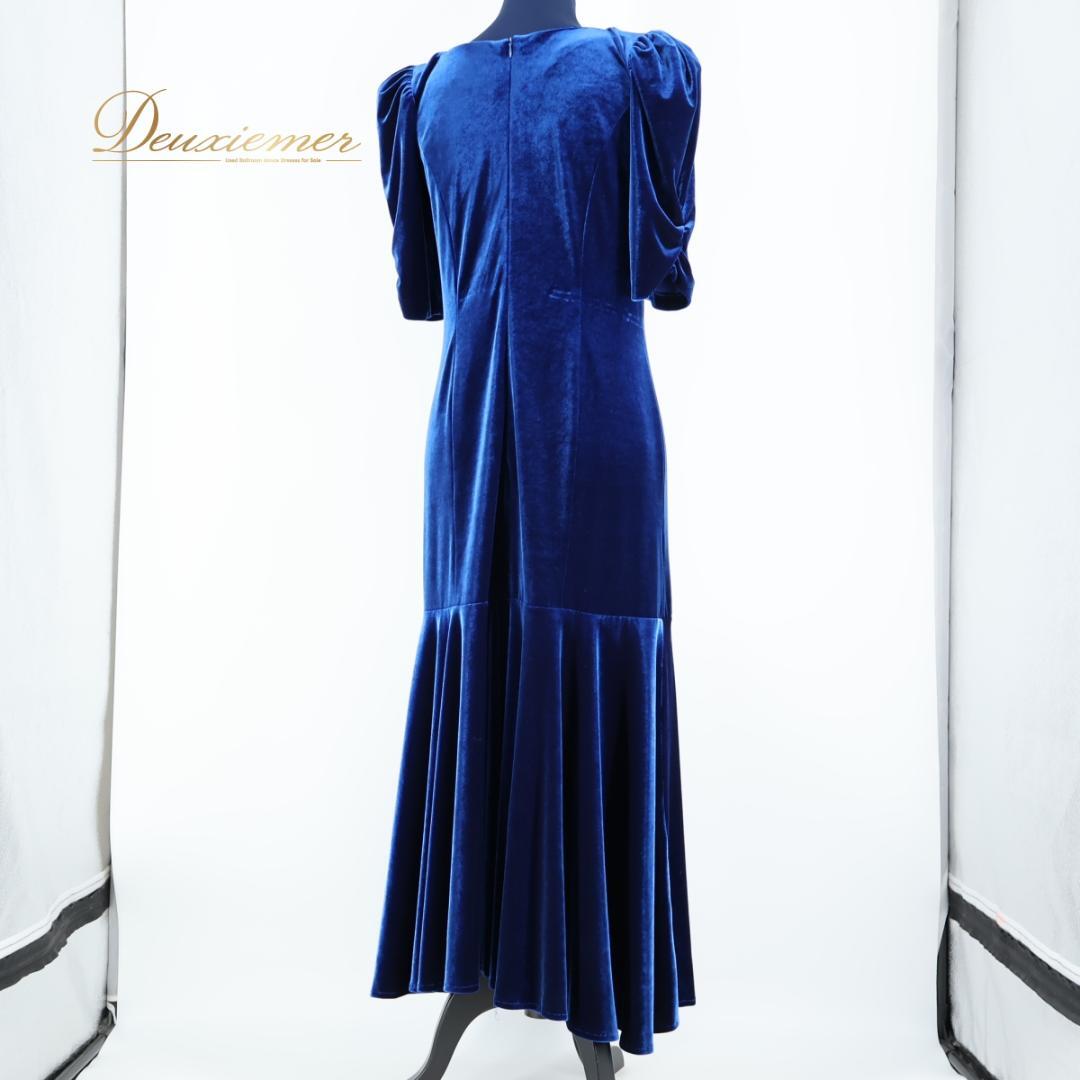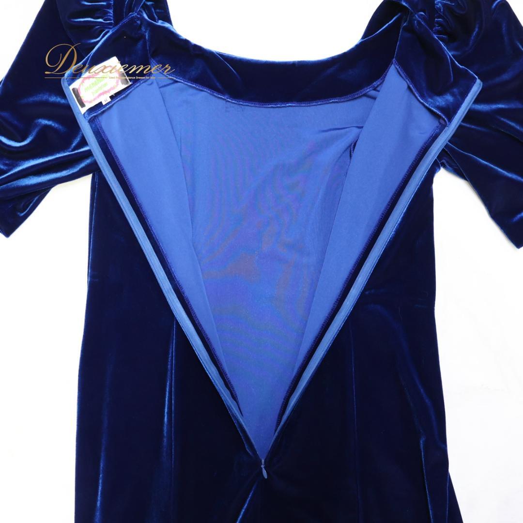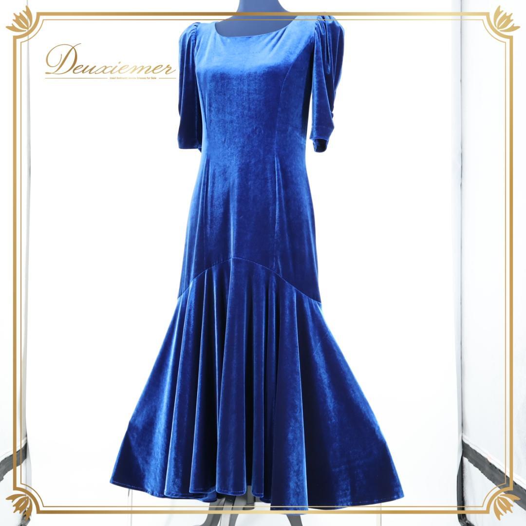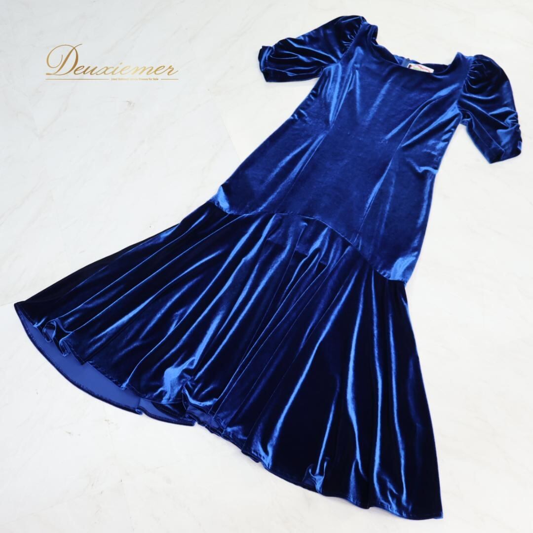 【日本製 フラダンス衣装】ブルー MENEHUNE PLANTETION メネフネプランテーション ワンピース ドレス 青 ベロア 光沢 高級感