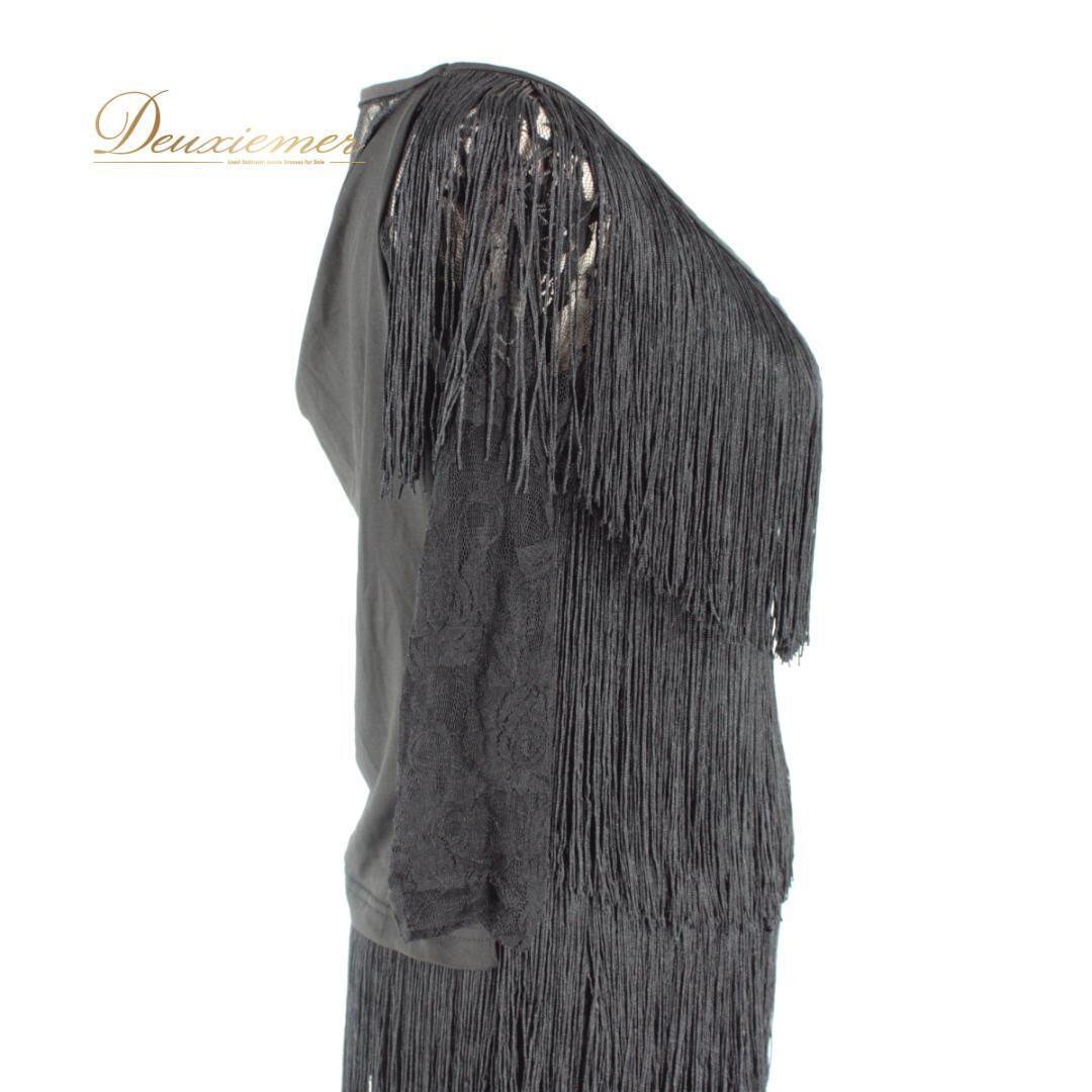 【美品 社交ダンス衣装】上下セット レッスンウェア 練習着 Lサイズ 黒 ブラック 花柄 レース フリンジ シンプル 長袖 透け感