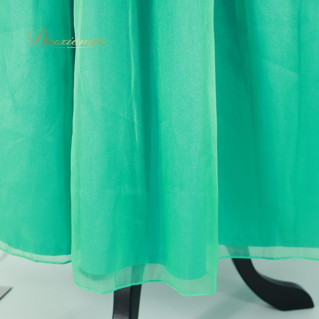【美品 日本製 フラダンス衣装】グリーン Paondor パンドール ワンピース ドレス 緑 透け感 フリル 淡い オーガンジー 可愛い