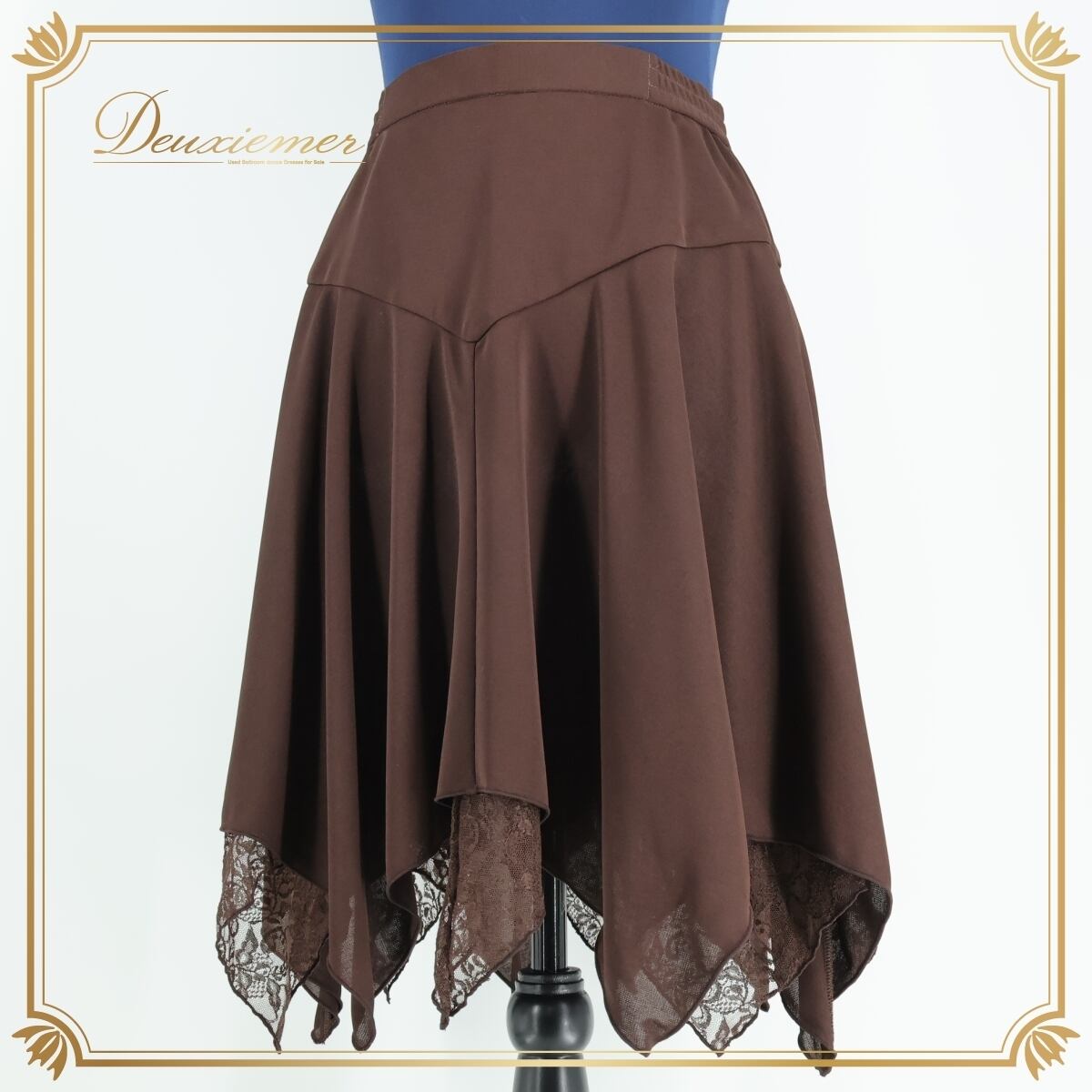 【日本製 社交ダンス衣装】ブラウン Chacott チャコット スカート ラテン 茶色 フリル レース ミニ丈 パーティ 発表会 練習
