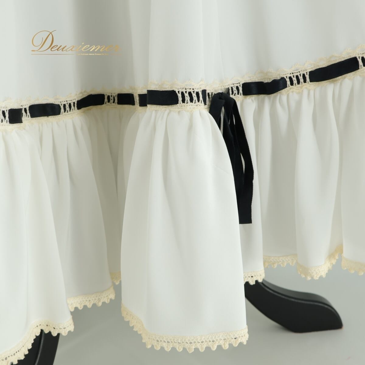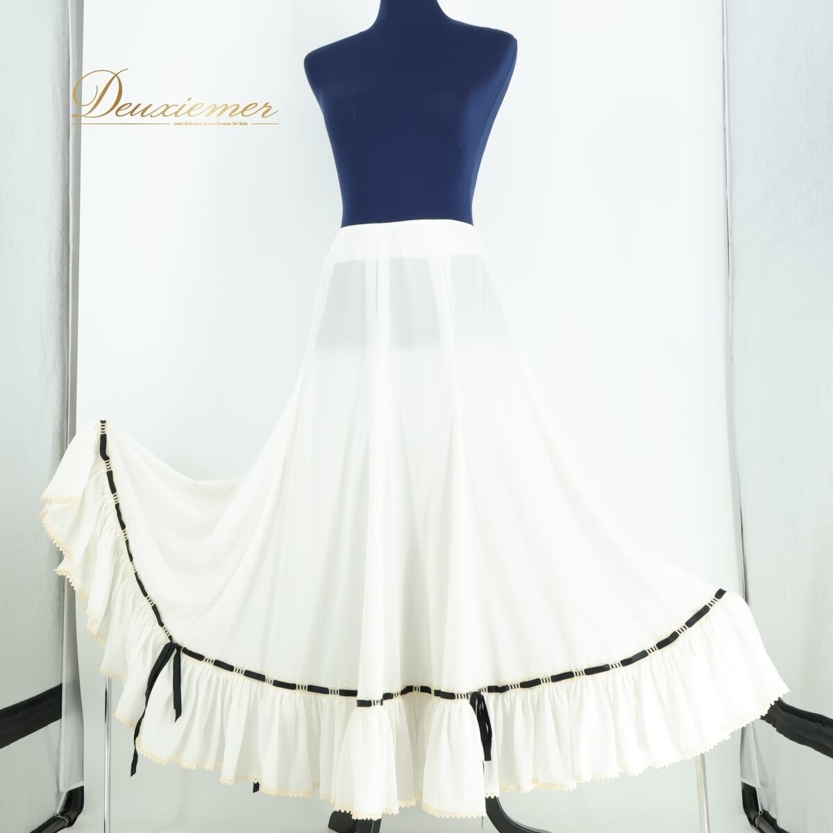 【フラメンコ衣装】ホワイト BABY TEARS ベビーティアーズ ファルダ ペチコート 白 スカート 梯子リボン 黒 レース 透け感