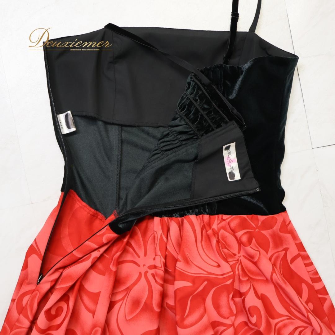 【日本製 フラダンス衣装】レッド Hula Ku セキノレーシングスポーツ ワンピース ドレス 赤 黒 ブラック キャミソール 花柄 ②