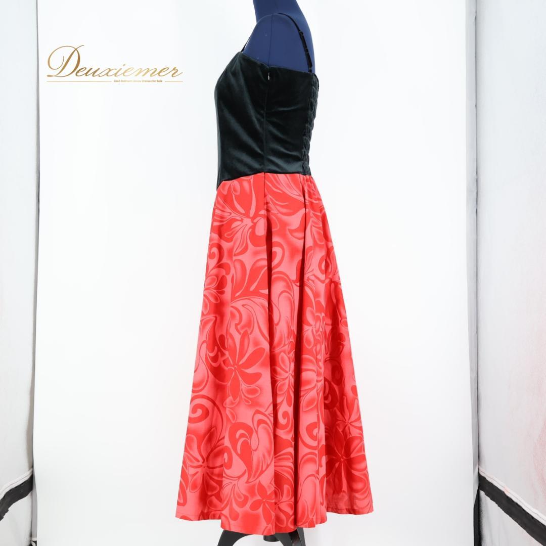 【日本製 フラダンス衣装】レッド Hula Ku セキノレーシングスポーツ ワンピース ドレス 赤 黒 ブラック キャミソール 花柄 ③