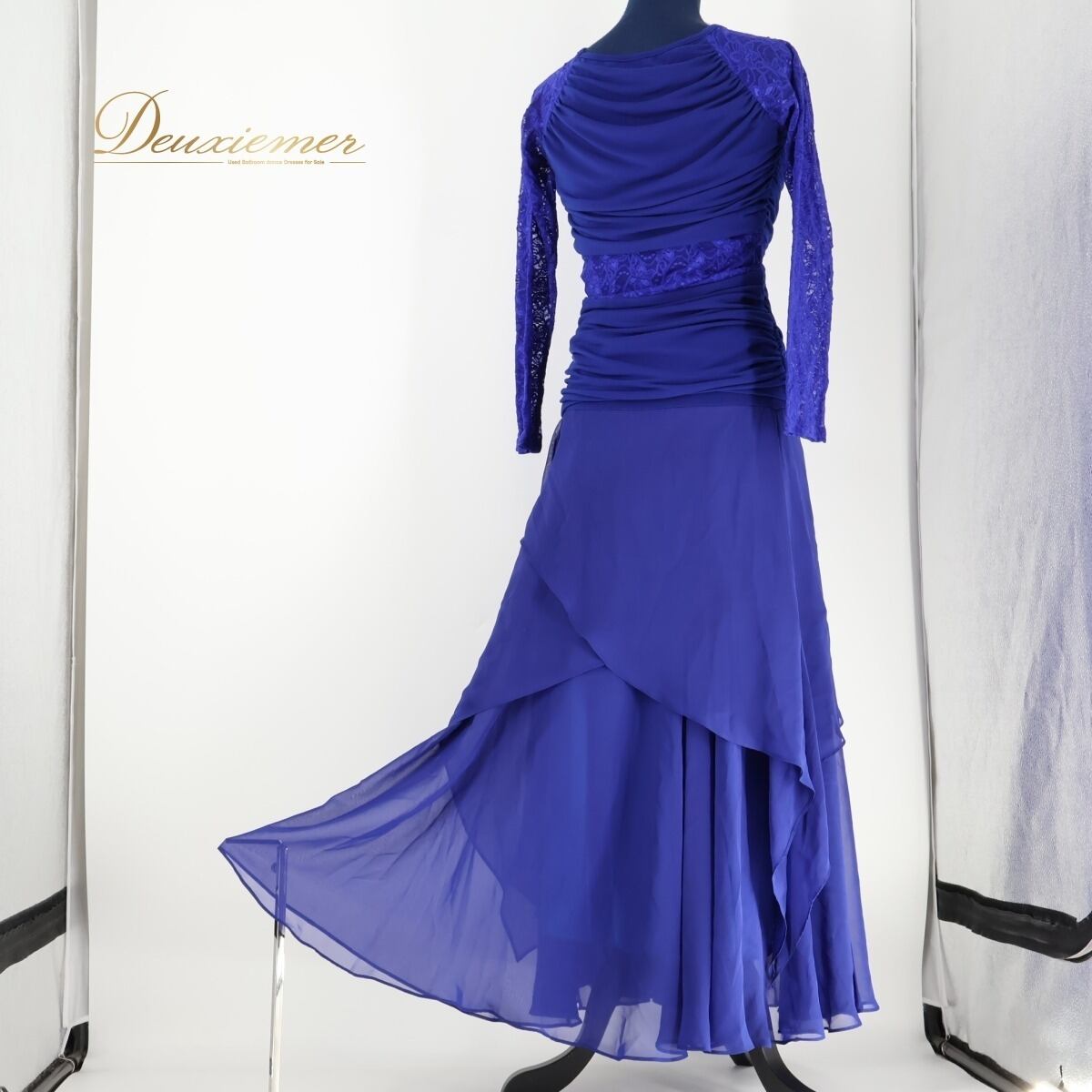 【社交ダンス衣装】ブルー create-sun クリエイトサン 上下セット 青 紫 レース 高級感 長袖 パーティ 発表会 レッスン 上品