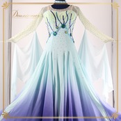 【社交ダンス衣装】ブルー ワンピース ドレス 水色 青 紫 グラデーション フロート 綺麗 デモ 競技用 ダンス用 落ち感
