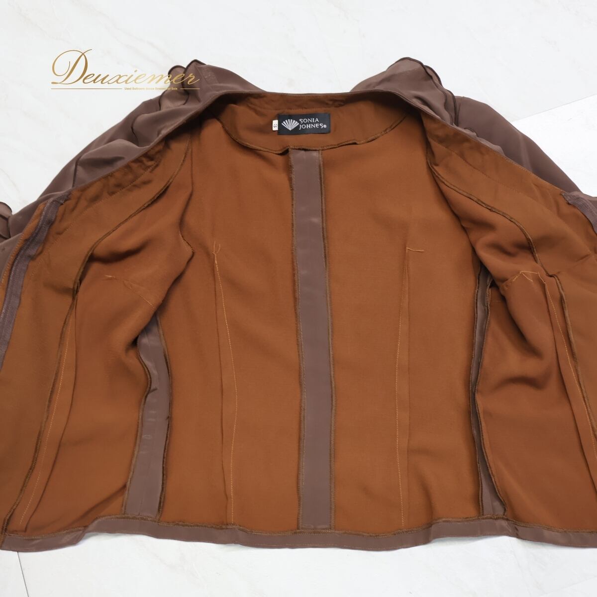 【美品 フラメンコ衣装】ブラウン SONIA JOHNES ソニアジョーンズ ブラウス トップス 茶色 無地 フリル レース ダンス用