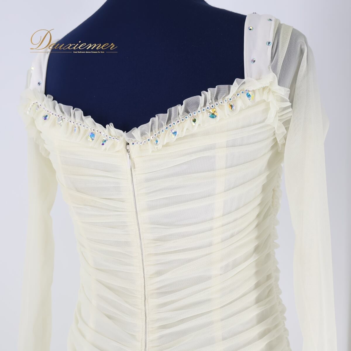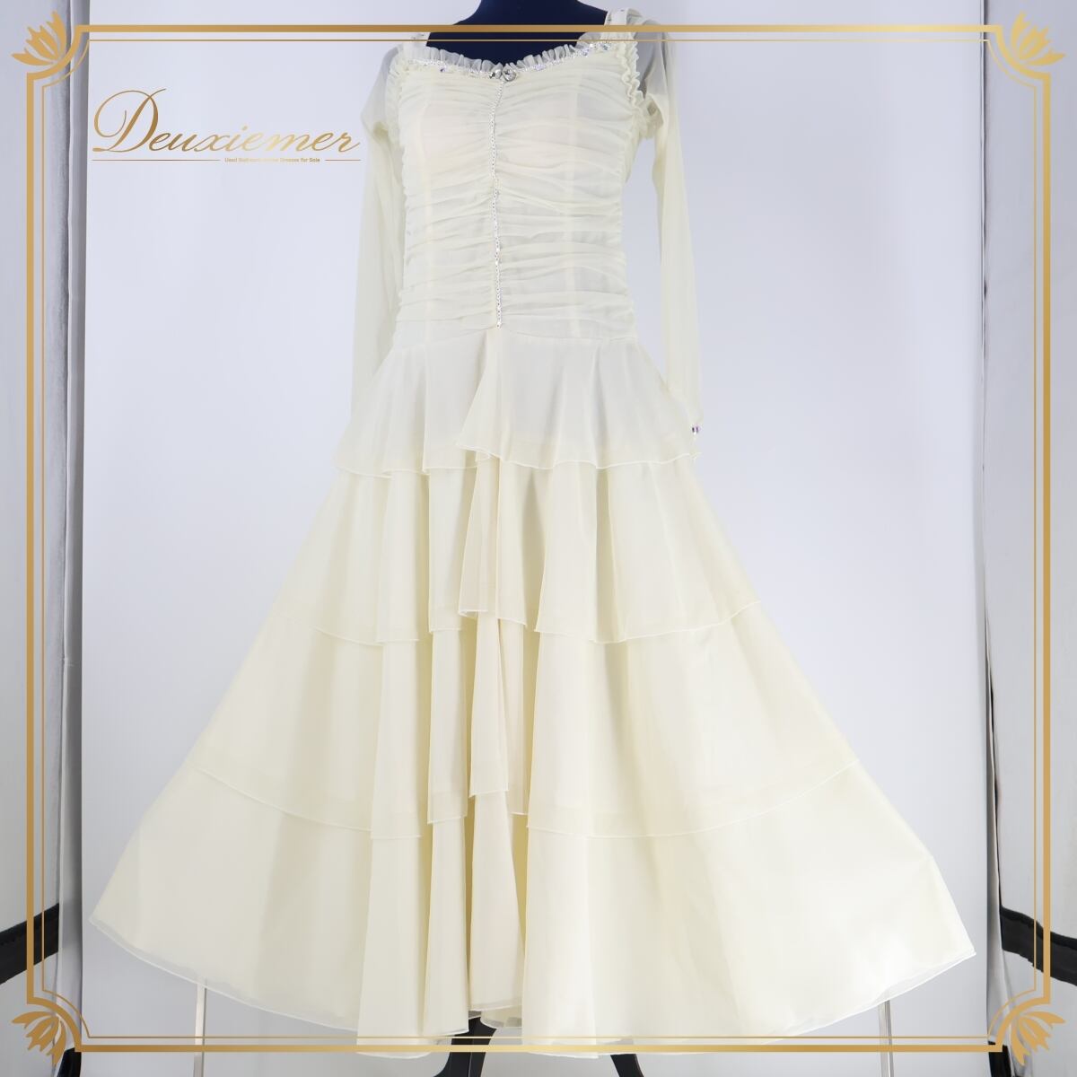 #社交ダンス #ダンスドレス #フリルデザイン #ビーズ装飾 #エレガントスタイル #明るいカラー #女性らしい #伸縮素材 #背面ファスナー #胸パッド付き #モダンダンス #ラテンドレス #パーティードレス #ドレスアップ #レッスン着 #ダンスファッション #ドレス衣装 #古着 #中古 #ENUTSU