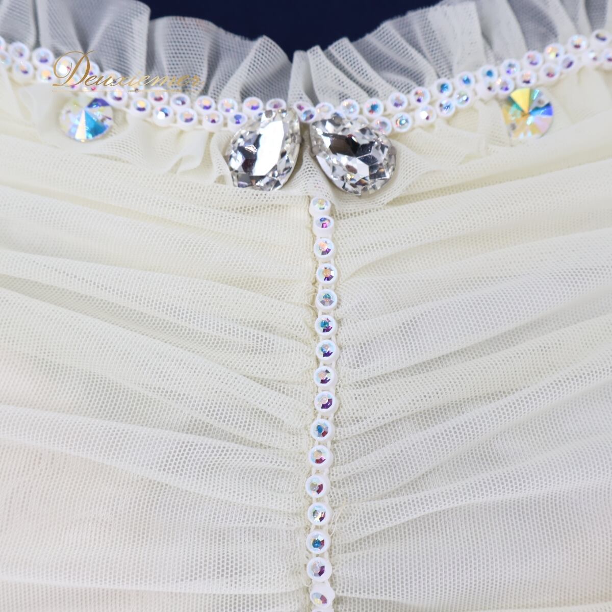 ▽胸元のフリルとビーズがかわいいデザイン