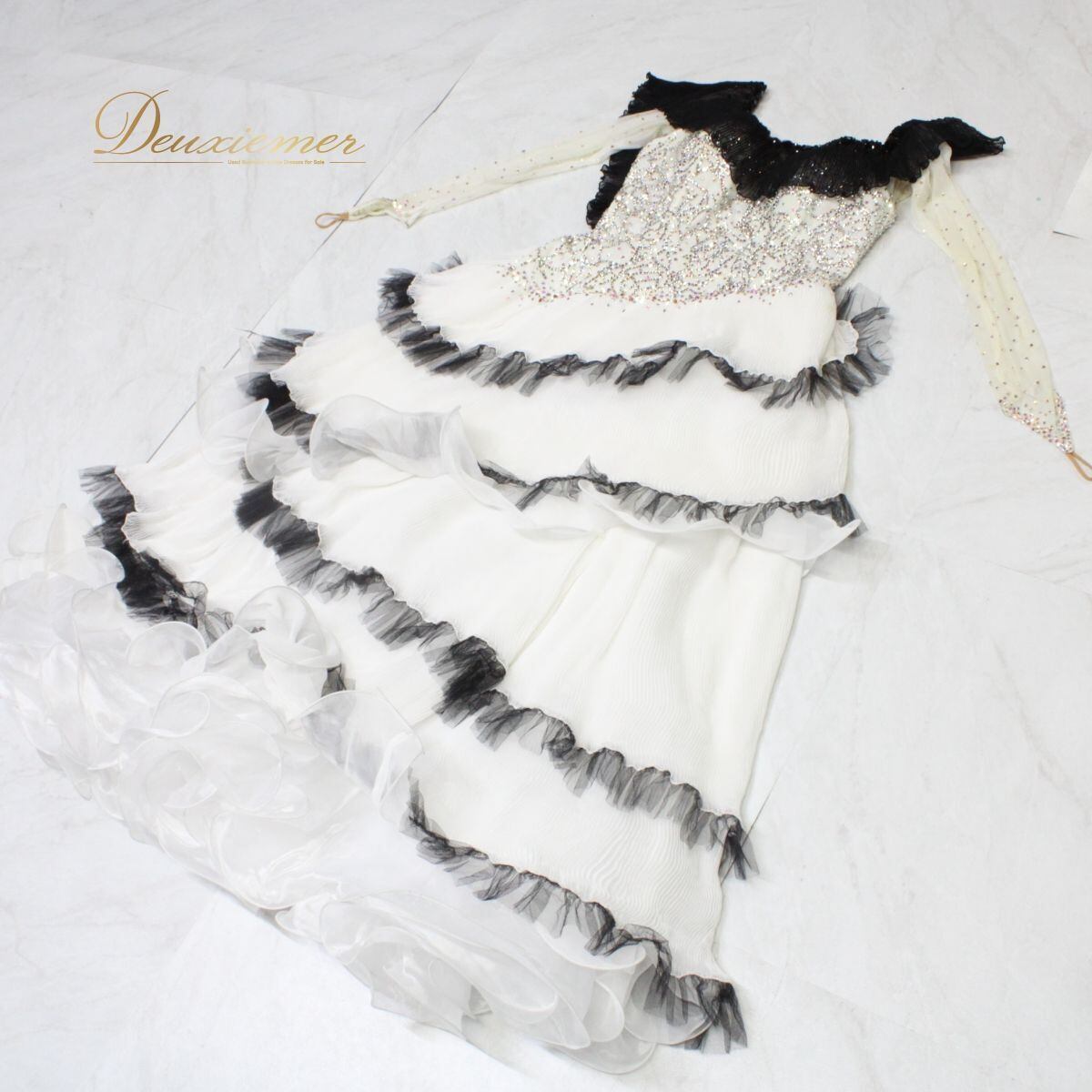 【日本製 社交ダンス衣装】ホワイト Chacott チャコット ワンピース ドレス 白 黒 フリル 綺麗 レース デモ 競技用 上品 高級