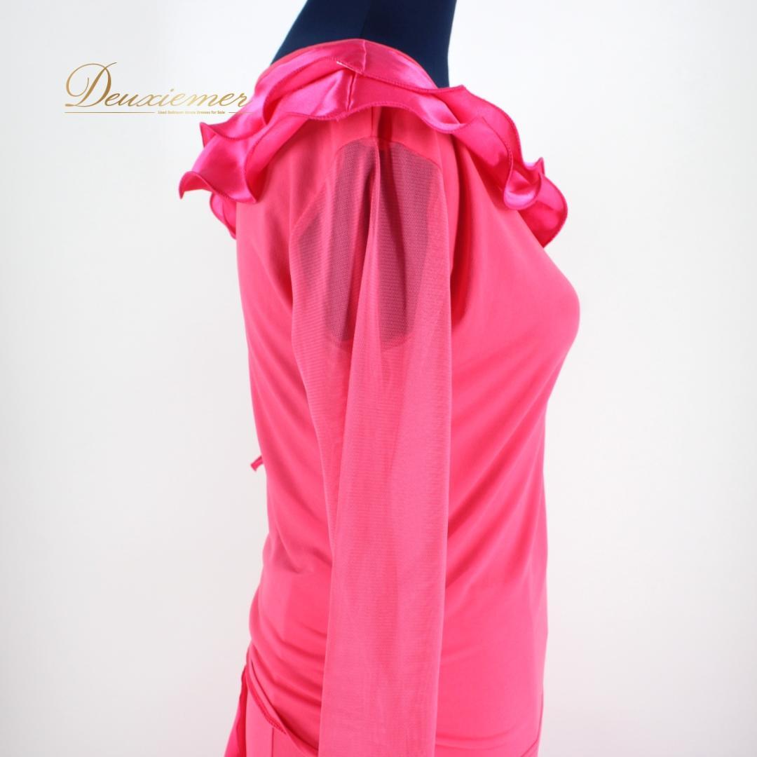 【美品 社交ダンス衣装】上下セット レッスンウェア 練習着 Mサイズ Lサイズ ピンク ビビッドピンク 鮮やか 無地 シンプル