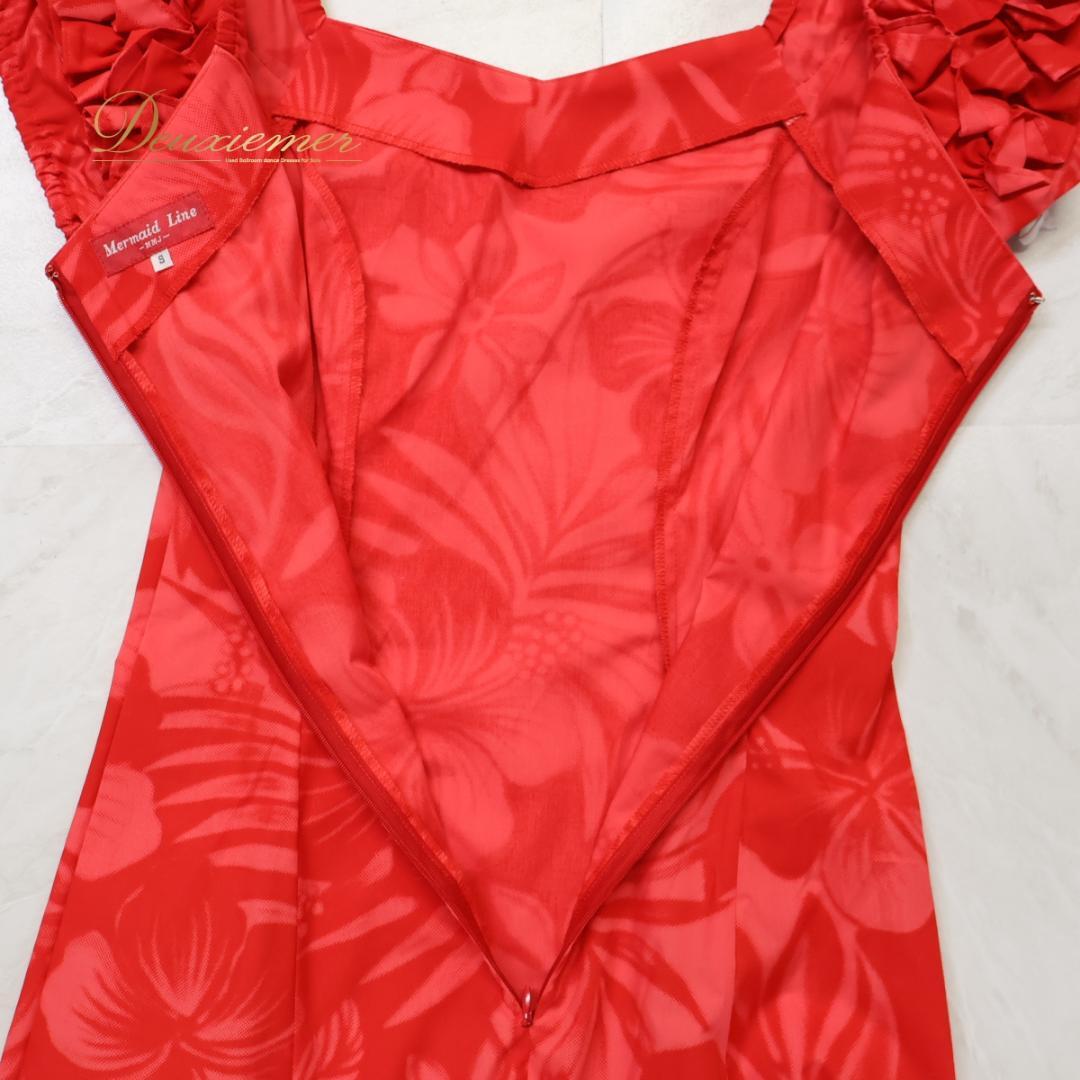 【日本製 フラダンス衣装】レッド MermaidLine MMJ マーメイドライン ワンピース ドレス 赤 花柄 ハワイアン アロハ かわいい