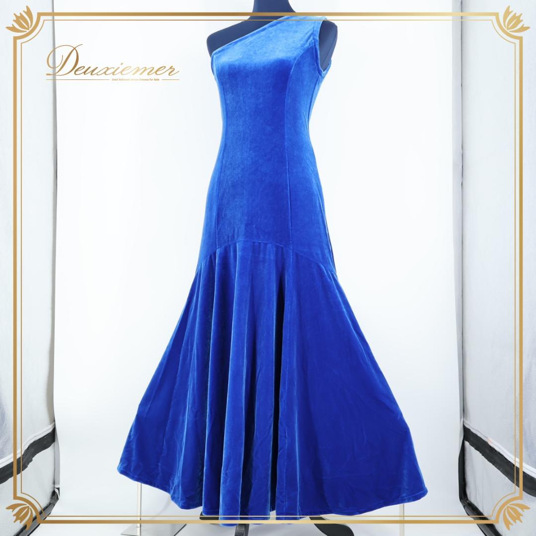 【美品 日本製 フラダンス衣装】ブルー MermaidLine MMJ マーメイドライン ワンピース ドレス 青 無地 ベロア 光沢 高級感