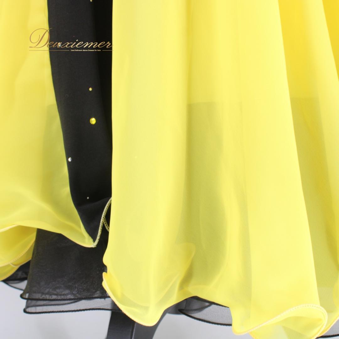 【社交ダンス衣装】イエロー ワンピース ドレス 黄色 黒 ブラック レース 軽い パーティ 発表会 レディース フリル 透け感