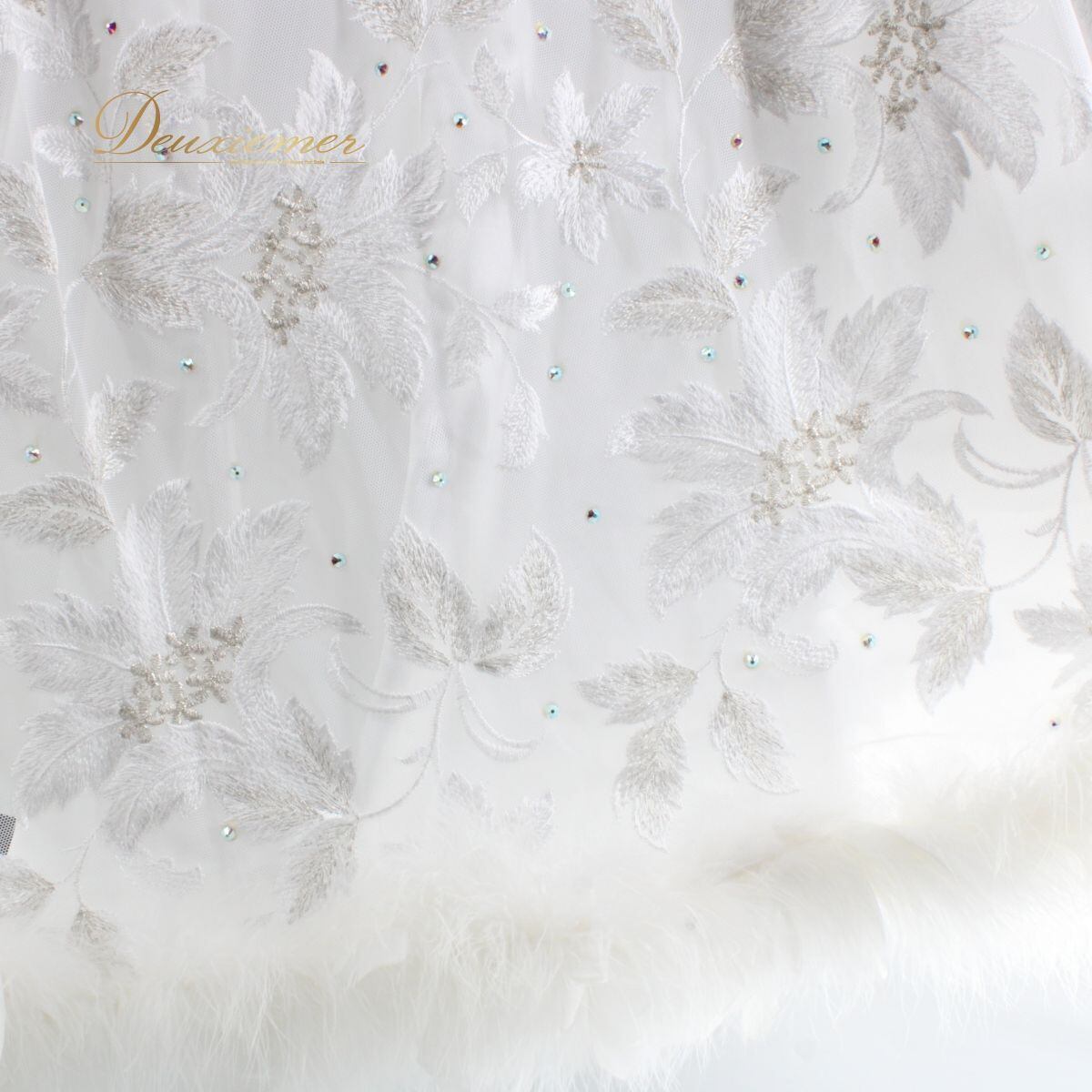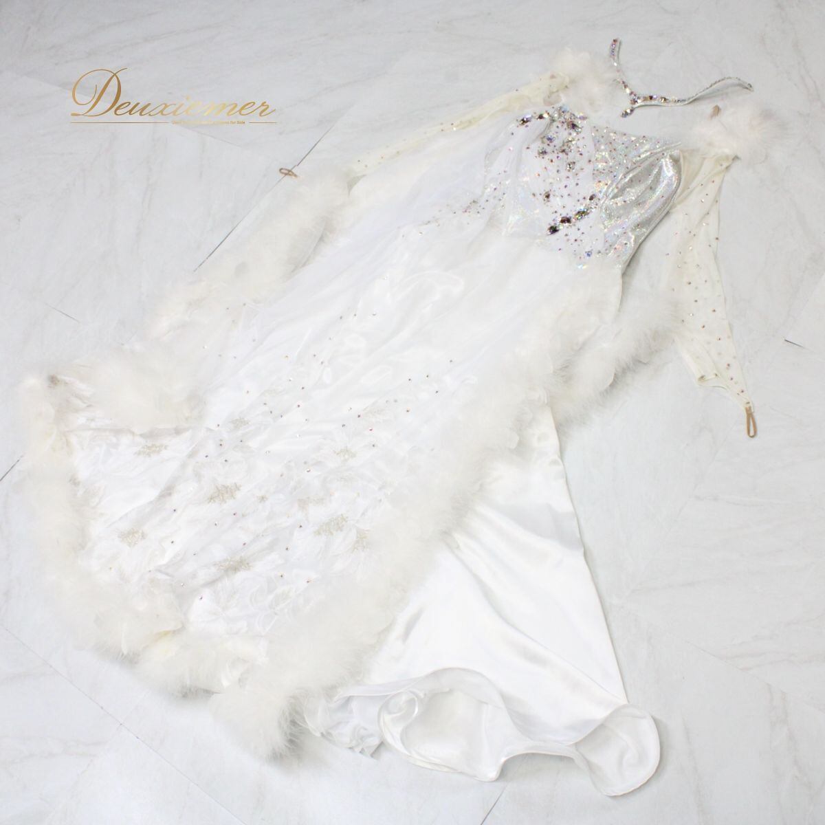 【日本製 社交ダンス衣装】ホワイト in the MOOD インザムード ワンピース ドレス 白 ファー フロート 刺繍 花柄 上品 高級感